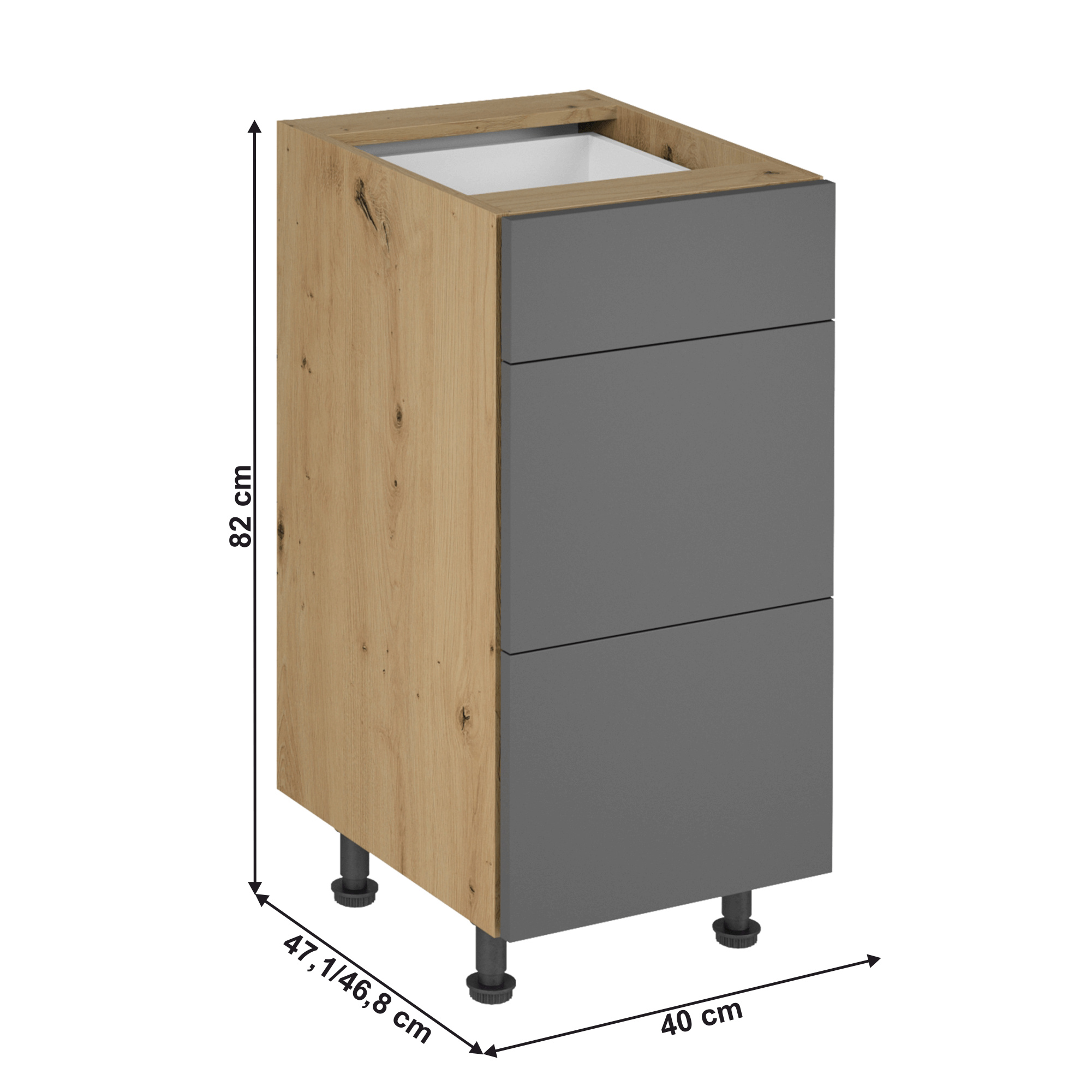 Spodní skříňka, dub artisan/šedý mat, LANGEN D40S3 P