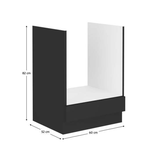 Materiál: laminovaná DTD Barva dvířek: černá Barva korpus: černý mat Rozměry (ŠxHxV): 60x52x82 cm Tloušťka materiálu: 1,6 cm Na vestavný sporák S dolní lištou/soklem Moderní design Bez pracovní desky Možnost dokoupit univerzální dřez LAY ON Dodáváno v demontu Spodní sektorové skříňky jsou dodávány včetně dolní lišty (sokla), bez pracovní desky. Pracovní desku o tloušťce 3,8 cm si můžete doobjednat v provedení marmur roma za cenu 1.650 Kč/bm