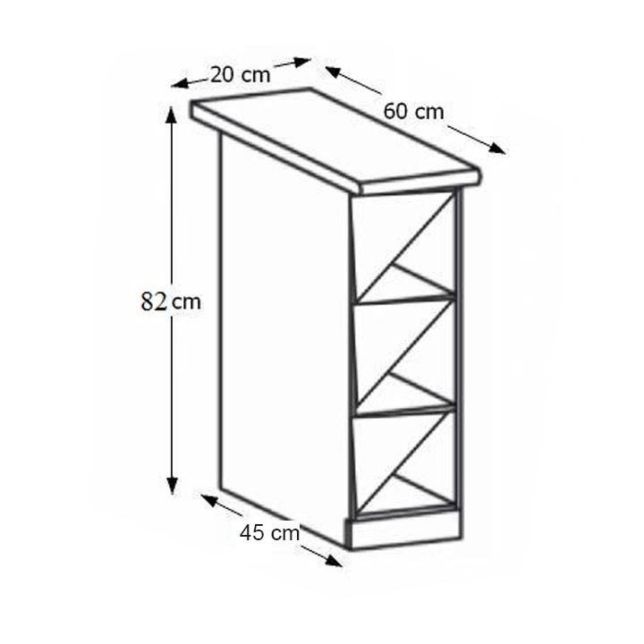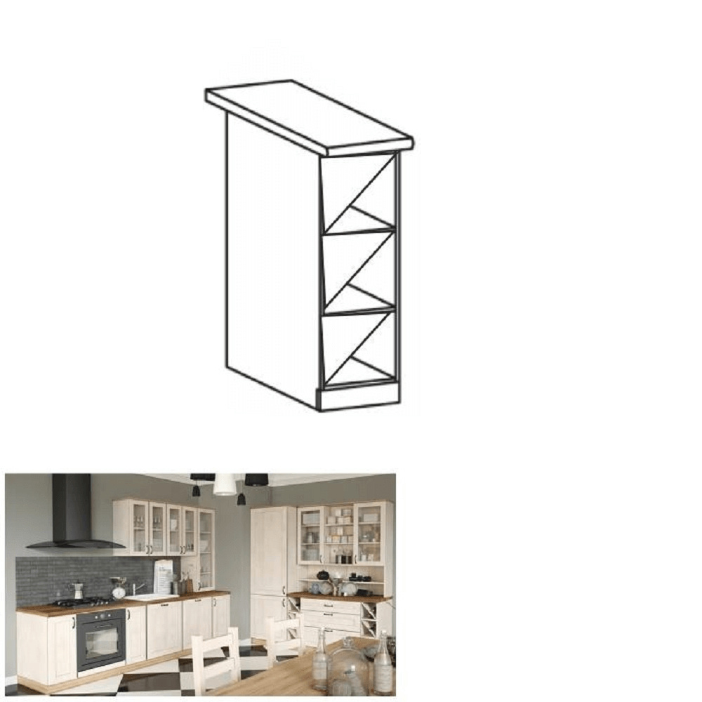 Skříňka s dvířky se sklem, ROYAL W40S Materiál: korpus je vyroben z kvalitní laminované dřevotřísky Barva: bílá / sosna skandinávská Rozměry ŠxHxV: 20x45/60x82 cm Tloušťka materiálu: 15 mm Dodávané v demontu. Spodní skříňky ke kuchyni ROYAL jsou dodávány bez pracovní desky a bez soklu. Pracovní desku Dub Porterhouse tmavý lze doobjednat v tloušťce 3,8 cm v ceně 1690 Kč/1 bm. Ke každé dolní skříňce, kromě rohových skříněk D25PZ, je třeba doobjednat i sokel v provedení dub divoký v ceně 270 Kč/1 bm a 2 kusy úchytů na sokl v ceně 30 Kč/2 ks. Ke spodním skříňkám máte možnost dokoupit také ukončení na sokl o hloubce 47 cm a 56 cm za 210 Kč. Objednávku vepište do poznámky v objednávkovém formuláři.