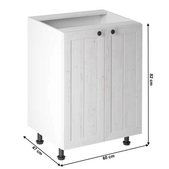 Spodní skříňka s dvířky ke kuchyni PROVANCE Provedení: DTD laminovaná / MDF Barva: bílá / sosna andersen Rozměry (ŠxHxV): 60x47x82 cm Tloušťka materiálu: 15 mm Systém tichého zavírání dvířek Spodní skříňky jsou dodávány bez pracovní desky. Pracovní deska v tloušťce 3 cm. Ke spodním skříňkám je třeba doobjednat sokl. Ke každé spodní skříňce, kromě dřezové D25PZ, je třeba doobjednat ještě 2 kusy úchytů na sokl. Cena za pracovní desku dub lancelot je 1.690, - Kč za bm- tloušťka je 38 mm, cena za spodní lištu je 390, - Kč za bm. Cena ukončení na sokl s hloubkou 47 cm nebo 58 cm je 140 Kč. Ke každé dolní skříňce, kromě D25PZ, je třeba doobjednat 2 ks úchytek na sokl - cena 30, - Kč / 2Ks.