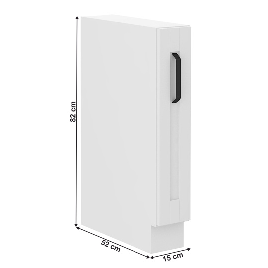 Spodní skříňka s výsuvným košem LULA 15 D CARGO Materiál: laminovaná DTD/fóliovaná MDF Barva: bílá Rozměry (ŠxHxV): 15x52x82 cm Tloušťka dvířek: 2 cm Tloušťka korpusu: 1,6 cm S dolní lištou/soklem Moderní dynamický design Dodáváno v demontu Možnost dokoupit univerzální dřez LAY ON Spodní skříňky jsou dodávány včetně dolní lišty, bez pracovní desky. Možnost dokoupení pracovní desky dub artisan v ceně 1.890 Kč/bm.nebo marmur roma v ceně 1.790 Kč/bm. Možnost dokoupit univerzální dřez LAY ON.