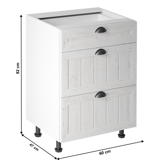 Spodní skříňka se třemi šuplíky D60S3, bílá / sosna andersen, PROVANCE