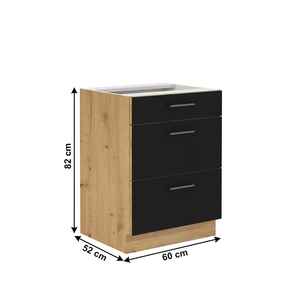 Spodní skříňka se zásuvkami, černý mat / dub artisan, Monro 60 D 3S BB