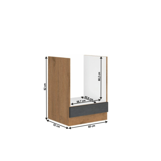 Spodní skříňka Vega 60 D GAZ BB Materiál: DTD laminovaná Barva: dub lancelot / šedá matná Rozměry (ŠxHxV): 60x52x82 cm Vnitřní rozměr (ŠxHxV): 56,7x45,6x60,2 cm Skříňka bez pracovní desky Systém tichého zavírání dvířek Včetně spodní lišty Dodávané v demontu Spodní skříňky jsou dodávány včetně dolní lišty, bez pracovní desky. Možnost dokoupit pracovní desku dub lancelot v ceně: 1590 Kč/bm. Možnost dokoupit univerzální L / P dřez LAY ON.