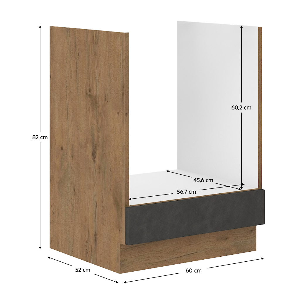 Spodní skříňka Vega 60 D GAZ BB Materiál: DTD laminovaná Barva: dub lancelot / šedá matná Rozměry (ŠxHxV): 60x52x82 cm Vnitřní rozměr (ŠxHxV): 56,7x45,6x60,2 cm Skříňka bez pracovní desky Systém tichého zavírání dvířek Včetně spodní lišty Dodávané v demontu Spodní skříňky jsou dodávány včetně dolní lišty, bez pracovní desky. Možnost dokoupit pracovní desku dub lancelot v ceně: 1590 Kč/bm. Možnost dokoupit univerzální L / P dřez LAY ON.