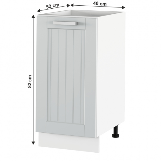 Materiál skříňka: DTD laminovaná / MDF fóliovaná Barva skříňka: světlešedá / bílá Materiál úchytky: kov Barva úchytky: matný chrom Rozměry (ŠxHxV): 40x52x82 cm Tloušťka materiálu: 16 mm S dvířky S nožičkami S kovovou úchytkou Kvalitní slovenský výrobek Dodávané v demontu Cena sektorových skříněk je včetně soklů, bez pracovní desky. Cena za pracovní desku je 1.290,-Kč za bm - tloušťka 38 mm.