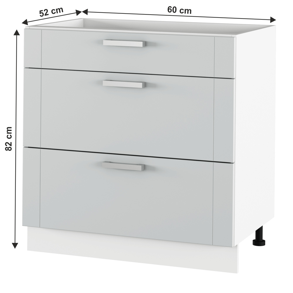 Materiál skříňka: DTD laminovaná / MDF fóliovaná Barva skříňka: světlešedá / bílá Materiál úchytky: kov Barva úchytky: matný chrom Rozměry (ŠxHxV): 80x52x82 cm Tloušťka materiálu: 16 mm s šuplíky S nožičkami S kovovou úchytkou Kvalitní slovenský výrobek Dodávané v demontu Cena sektorových skříněk je včetně soklů, bez pracovní desky. Cena za pracovní desku je 1.290,-Kč za bm - tloušťka 38 mm.