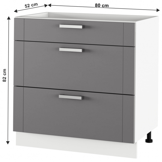 Materiál skříňka: DTD laminovaná / MDF fóliovaná Barva skříňka: tmavě šedá / bílá Materiál úchytky: kov Barva úchytky: matný chrom Rozměry (ŠxHxV): 80x52x82 cm Tloušťka materiálu: 16 mm s šuplíky S nožičkami S kovovou úchytkou Kvalitní slovenský výrobek Dodávané v demontu Cena sektorových skříněk je včetně soklů, bez pracovní desky. Cena za pracovní desku je 1.290,-Kč za bm - tloušťka 38 mm.