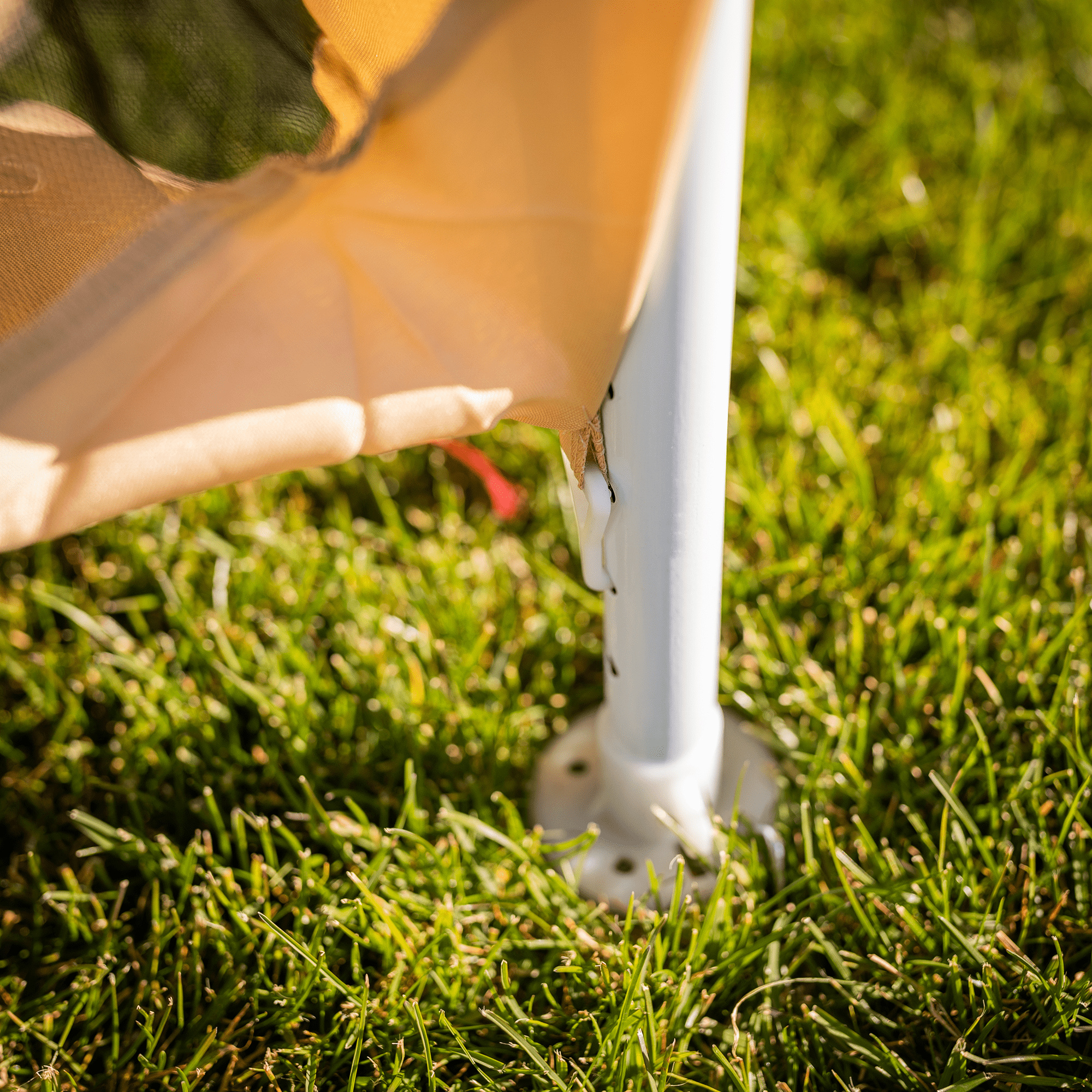 Materiál: polyethylen / ocel Barva: béžová / černá Rozměry (ŠxHxV): 3,9x3,9x2,5 m stanový altán rychle skládací Ocelová trubková konstrukce Šestiúhelníkový profil 2x2x2 m Se 6 průhlednými stěnami 2 stěny se zipem (vchod) nepromokavý Odolný vůči UV záření Ochrana před slunečním zářením a lehkým deštěm Nevystavujte ho nepříznivým povětrnostním podmínkám Nenáročný na údržbu Hmotnost: 10 kg Dodávané v demontu