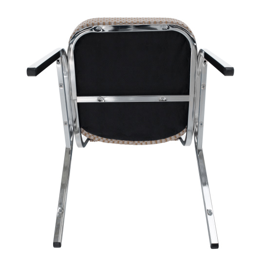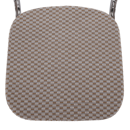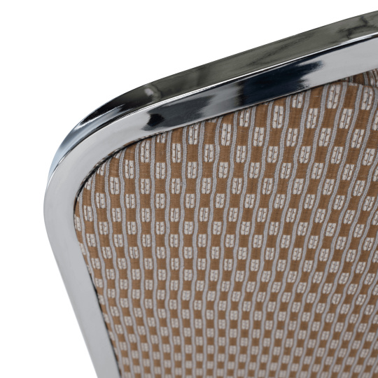 Materiál čalounění: látka Oděruodolnost textilie podle testu Martindale: 65 000 oděrek Barva čalounění: béžová / vzor Materiál nohy: kov Barva nohy: chrom Rozměry (ŠxHxV): 44x60x95 cm Výška sedu: 44,5 cm Hloubka sedu: 40 cm Šířka sedu: 38,5 cm Opěrka zad (ŠxV): 40x54 cm Nosnost: 130 kg stohovatelná Dodávaná v monte