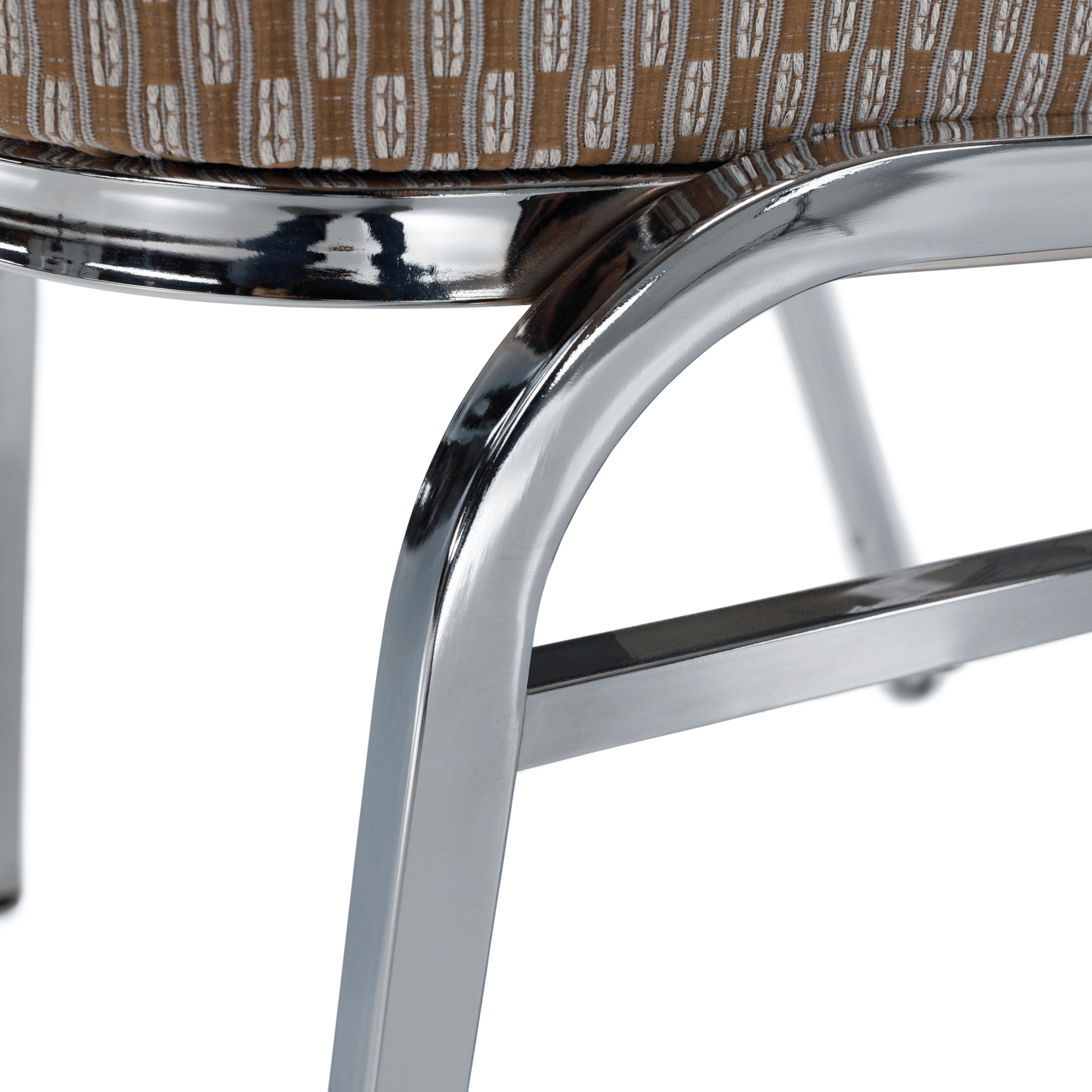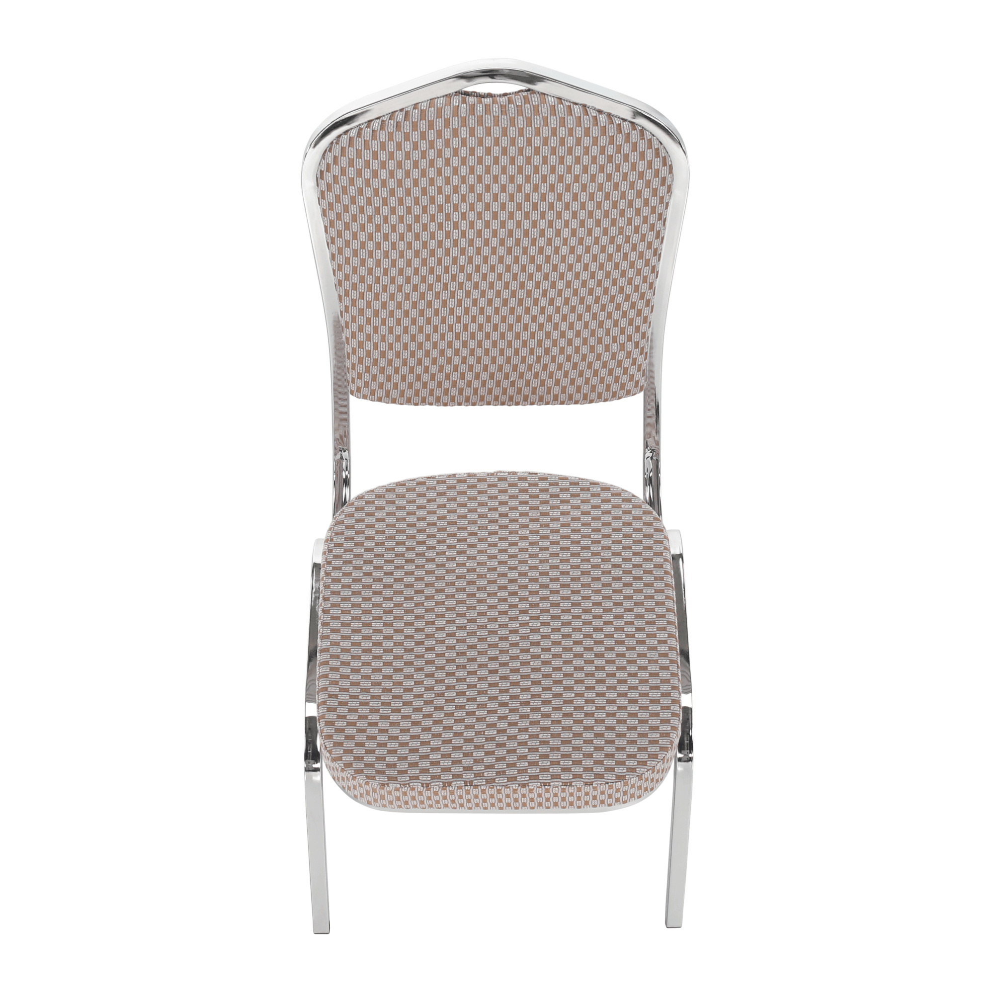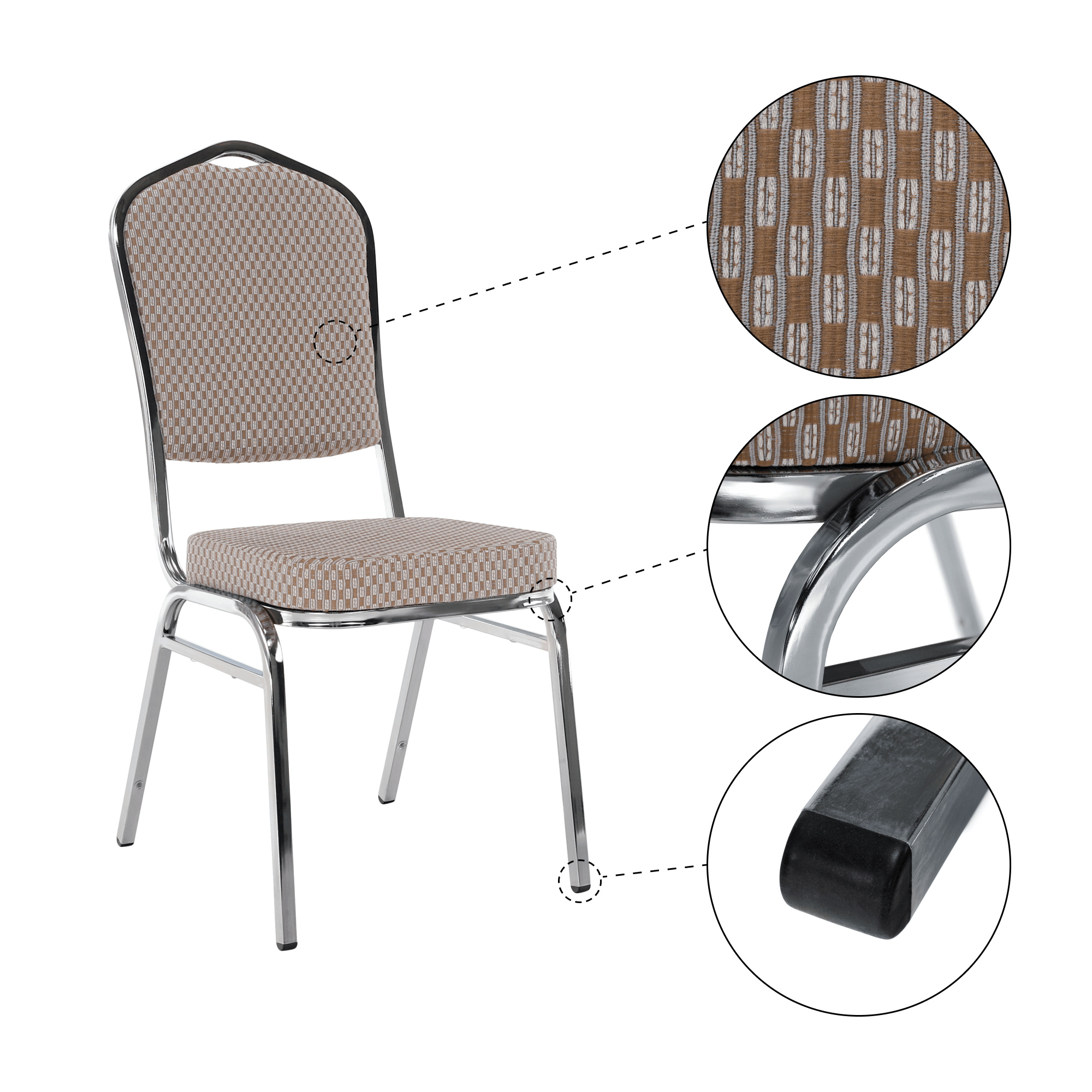 Materiál čalounění: látka Oděruodolnost textilie podle testu Martindale: 65 000 oděrek Barva čalounění: béžová / vzor Materiál nohy: kov Barva nohy: chrom Rozměry (ŠxHxV): 44x60x95 cm Výška sedu: 44,5 cm Hloubka sedu: 40 cm Šířka sedu: 38,5 cm Opěrka zad (ŠxV): 40x54 cm Nosnost: 130 kg stohovatelná Dodávaná v monte