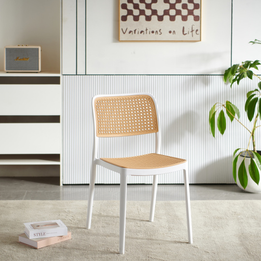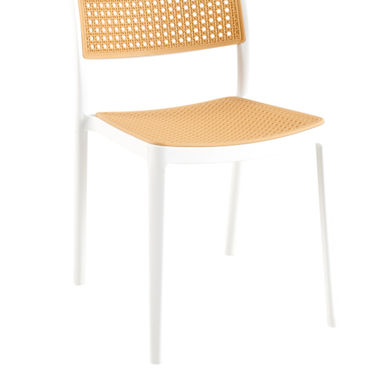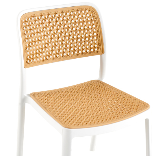 Materiál: plast Barva: bílá/béžová Rozměry (ŠxHxV): 47x55x81,5 cm Výška sedu: 46 cm Hloubka sedu: 43 cm Šířka sezení: 43 cm Výška zad: 39 cm Šířka zad: 43 cm Nosnost: 100 kg Hmotnost: 4,7 kg Stohovatelná Vhodná do interiéru i exteriéru Dodáváno v monte