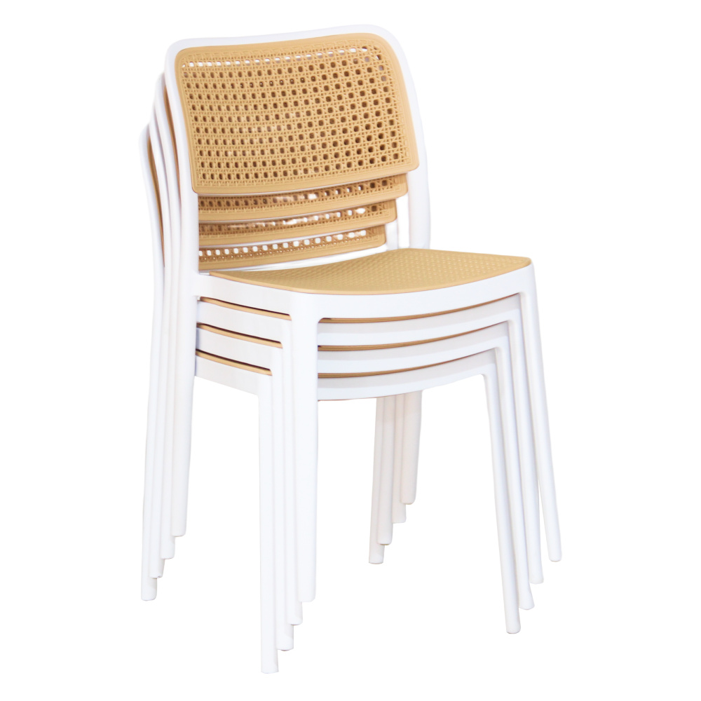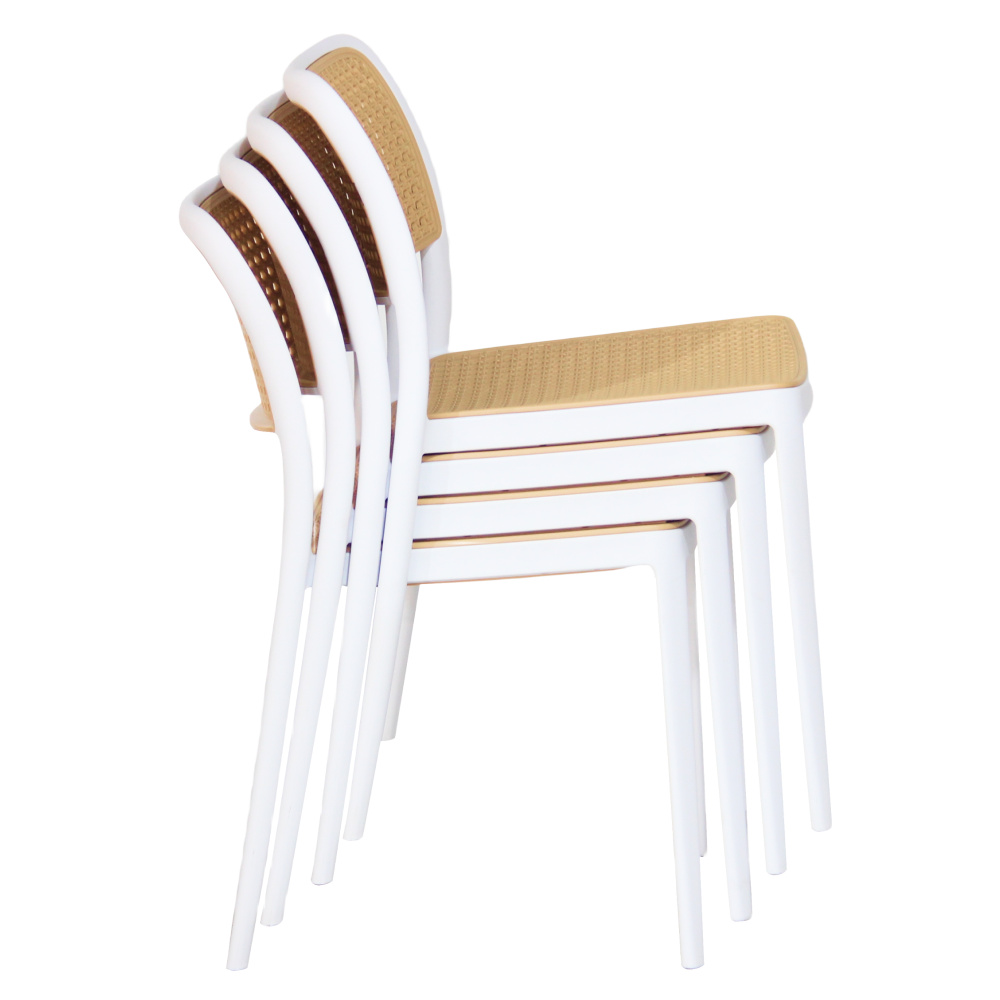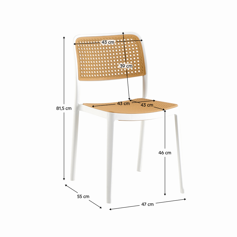 Materiál: plast Barva: bílá/béžová Rozměry (ŠxHxV): 47x55x81,5 cm Výška sedu: 46 cm Hloubka sedu: 43 cm Šířka sezení: 43 cm Výška zad: 39 cm Šířka zad: 43 cm Nosnost: 100 kg Hmotnost: 4,7 kg Stohovatelná Vhodná do interiéru i exteriéru Dodáváno v monte