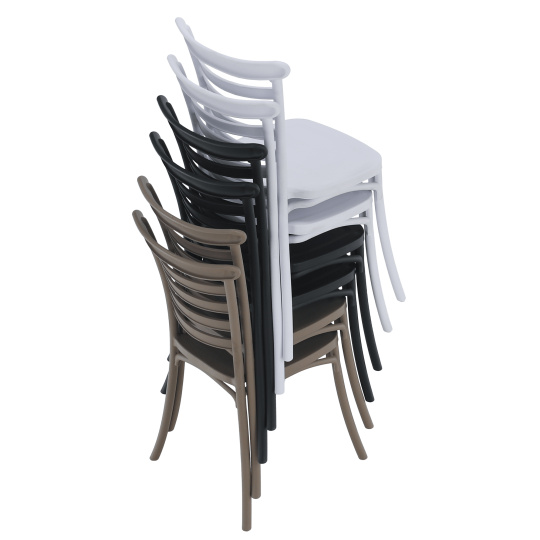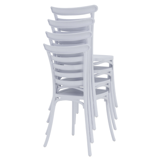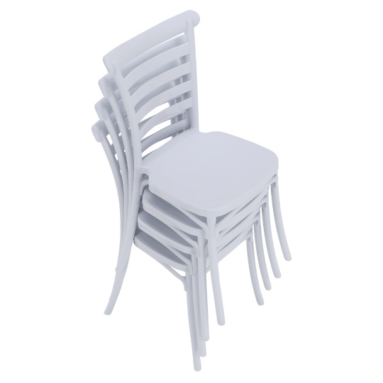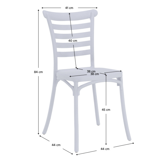Materiál: plast Barva: bílá Rozměry (ŠxHxV): 44x44x84 cm Výška sedu: 45 cm Hloubka sedu: 38 cm Šířka sezení: 38 cm Výška zad: 40 cm Šířka zad: 41 cm Nosnost: 100 kg Hmotnost: 3,25 kg Stohovatelná Vhodná do interiéru i exteriéru Dodáváno v montu