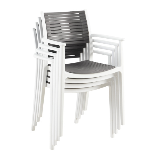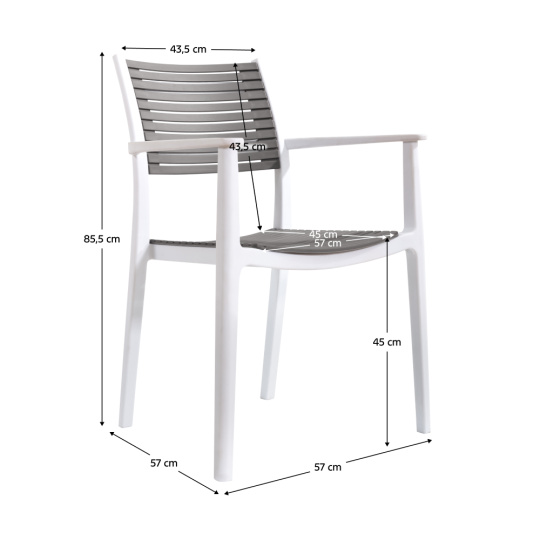 Materiál: plast Barva: bílá/šedohnědá Rozměry (ŠxHxV): 58x56,5x85,5 cm Výška sedu: 45 cm Hloubka sedu: 45 cm Šířka sezení: 57 cm Výška zad: 44,5 cm Šířka zad: 43,5 cm Nosnost: 100 kg Hmotnost: 6,9 kg Stohovatelná Vhodná do interiéru i exteriéru Dodáváno v monte