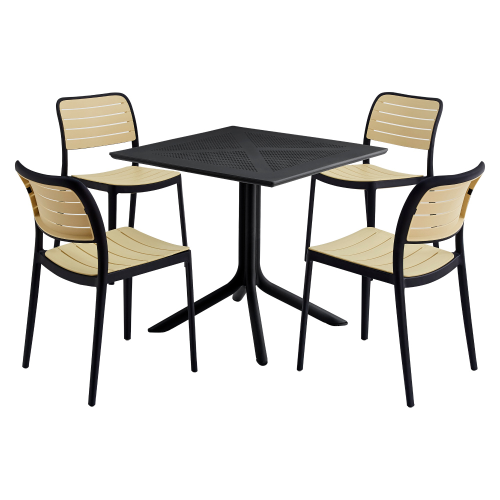 Materiál: plast Barva: černá/béžová Rozměry (ŠxHxV): 44x55x82 cm Výška sedu: 45 cm Hloubka sedu: 43 cm Šířka sedu: 44 cm Výška zad: 36 cm Šířka zad: 40 cm Nosnost: 100 kg Hmotnost: 4,8 kg Stohovatelná Vhodná do interiéru i exteriéru Dodáváno v monte