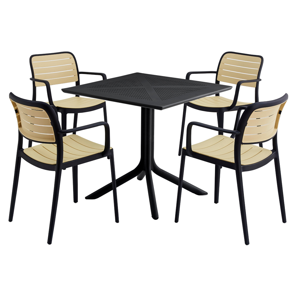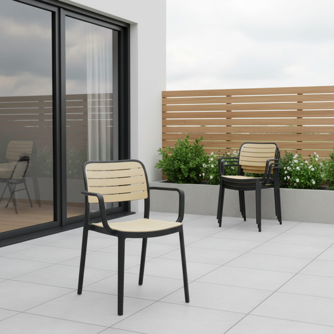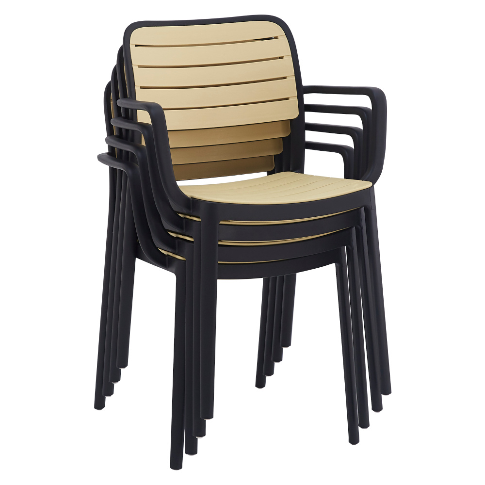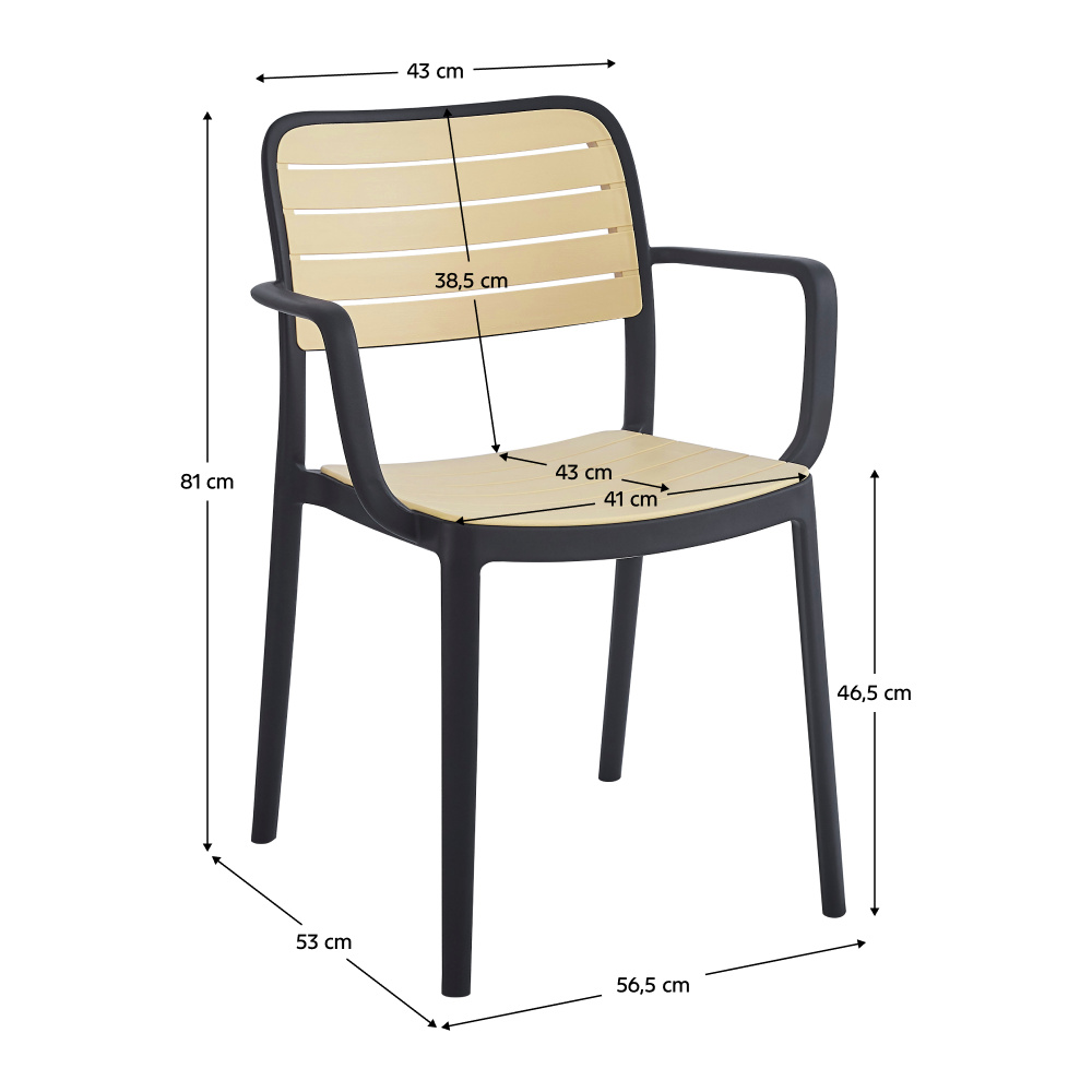 Materiál: plast Barva: černá/béžová Rozměry (ŠxHxV): 56,5x53x81 cm Výška sedu: 46,5 cm Hloubka sedu: 43 cm Šířka sedu: 41 cm Výška zad: 38,5 cm Šířka zad: 43 cm Nosnost: 100 kg Hmotnost: 5,3 kg Stohovatelná Vhodná do interiéru i exteriéru Dodáváno v monte