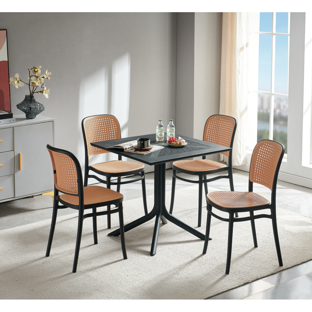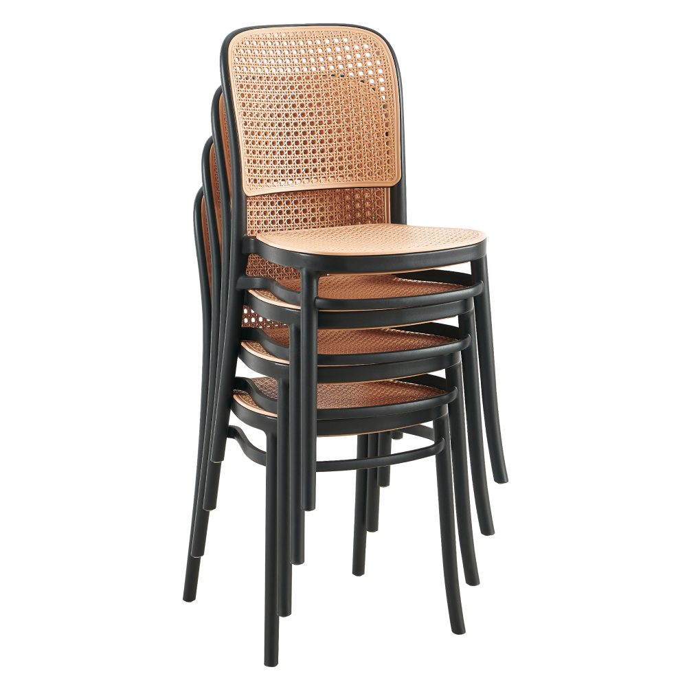 Materiál: plast Barva: černá/béžová Rozměry (ŠxHxV): 44,5x53x85,5 cm Výška sedu: 46,5 cm Hloubka sedu: 41 cm Šířka sezení: 41 cm Výška zad: 41,5 cm Šířka zad: 39 cm Nosnost: 100 kg Hmotnost: 4,72 kg Stohovatelná Vhodná do interiéru i exteriéru Dodáváno v monte