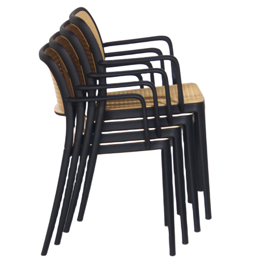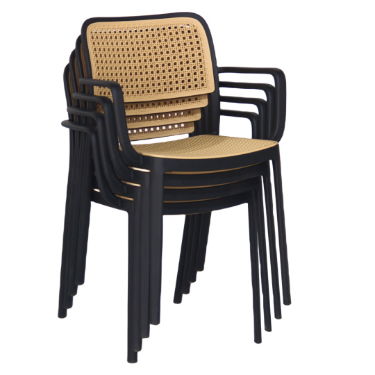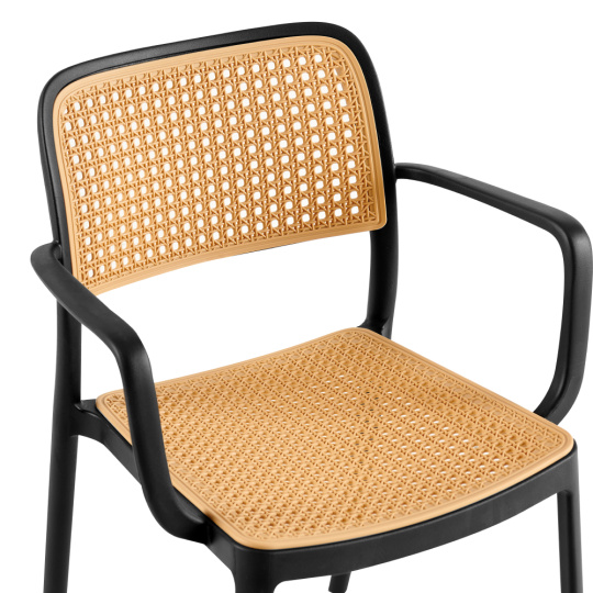 Materiál: plast Barva: černá/béžová Rozměry (ŠxHxV): 58x55x81,5 cm Výška sedu: 46 cm Hloubka sedu: 43 cm Šířka sezení: 43 cm Výška zad: 39 cm Šířka zad: 43 cm Nosnost: 100 kg Hmotnost: 5,25kg Stohovatelná Vhodná do interiéru i exteriéru Dodáváno v monte