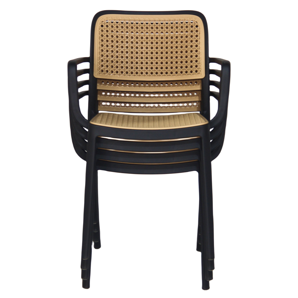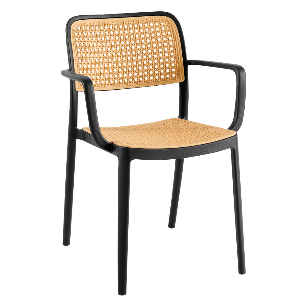 Materiál: plast Barva: černá/béžová Rozměry (ŠxHxV): 58x55x81,5 cm Výška sedu: 46 cm Hloubka sedu: 43 cm Šířka sezení: 43 cm Výška zad: 39 cm Šířka zad: 43 cm Nosnost: 100 kg Hmotnost: 5,25kg Stohovatelná Vhodná do interiéru i exteriéru Dodáváno v monte