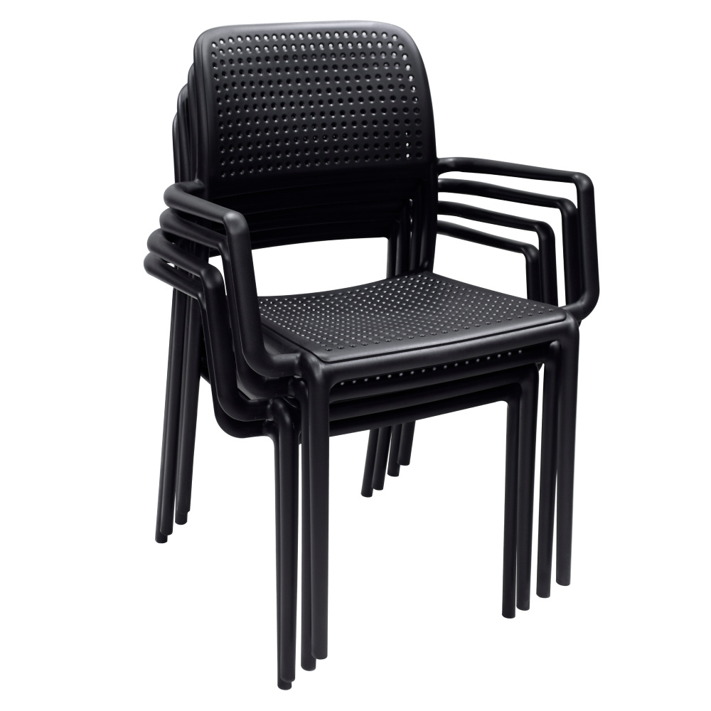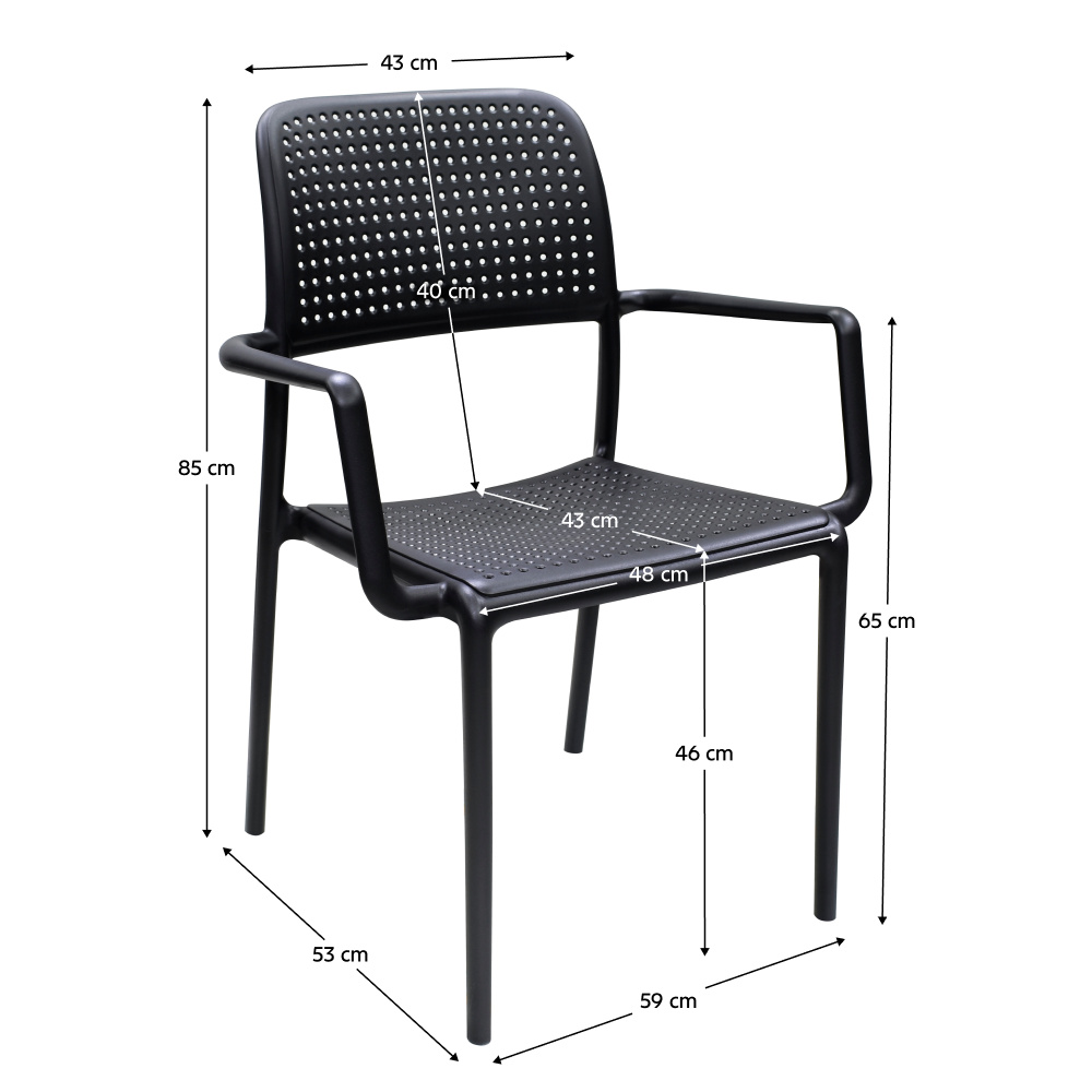 Materiál: plast Barva: černá Rozměry (ŠxHxV): 59x53x85 cm Výška sedu: 46 cm Hloubka sedu: 43 cm Šířka sezení: 48 cm Výška zad: 40 cm Šířka zad: 43 cm Nosnost: 100 kg Hmotnost: 4,7 kg Stohovatelná Vhodná do interiéru i exteriéru Dodáváno v monte