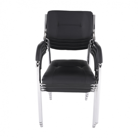 Oděruodolnost textilie podle testu Martindale: 100 000 oděrek Barva: černá / chrom Rozměry (ŠxHxV): 52x55x85 cm Výška sedu: 41 cm Hloubka sedu: 46 cm Šířka sedu: 43 cm Šířka zádové opěrky: 45 cm Výška zádové opěrky: 43,5 cm Výška od země po opěrku na ruce: 63,5 cm Nosnost: 110 kg Jeden stoh obsahuje Max. 8 ks židlí Výška stohu při 8 ks židlí je 120 cm Dodávané v monte