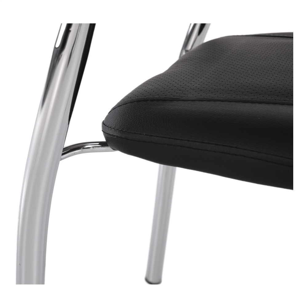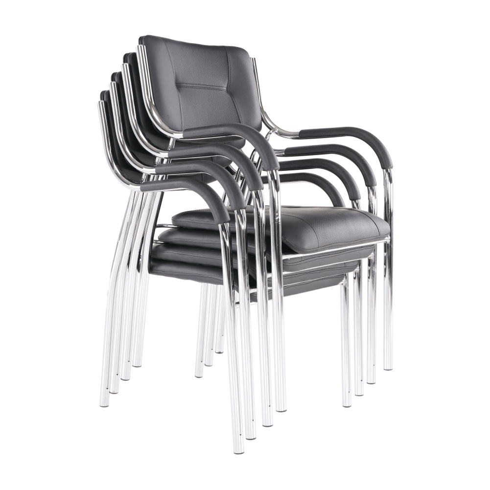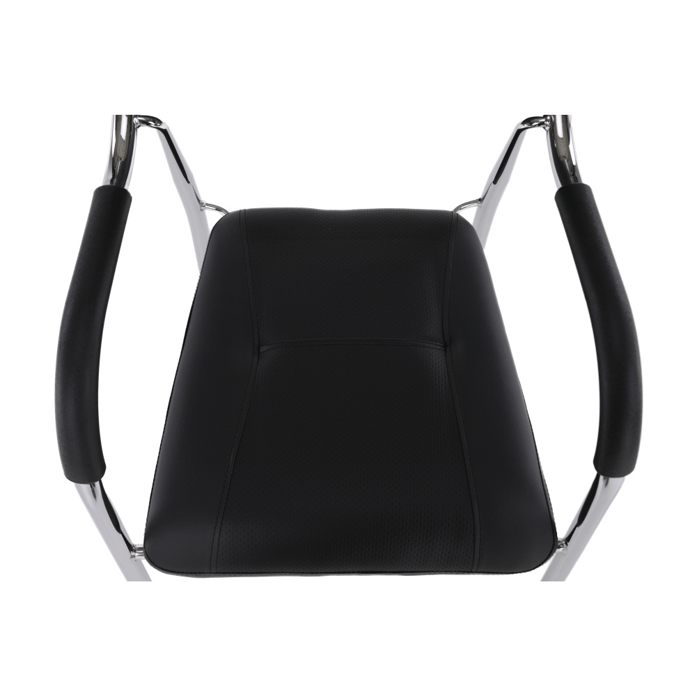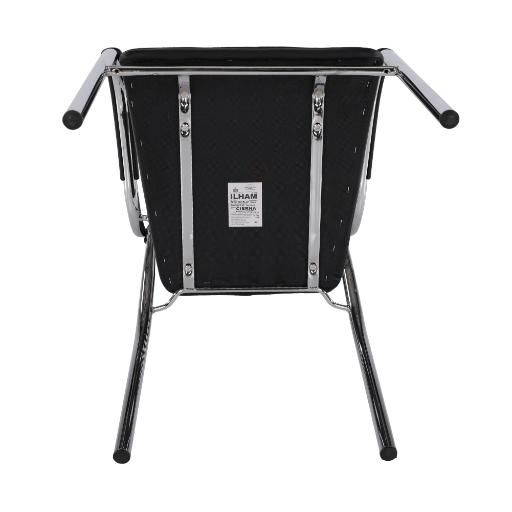 Oděruodolnost textilie podle testu Martindale: 100 000 oděrek Barva: černá / chrom Rozměry (ŠxHxV): 52x55x85 cm Výška sedu: 41 cm Hloubka sedu: 46 cm Šířka sedu: 43 cm Šířka zádové opěrky: 45 cm Výška zádové opěrky: 43,5 cm Výška od země po opěrku na ruce: 63,5 cm Nosnost: 110 kg Jeden stoh obsahuje Max. 8 ks židlí Výška stohu při 8 ks židlí je 120 cm Dodávané v monte
