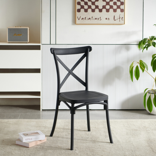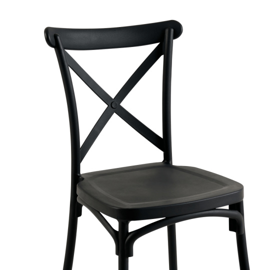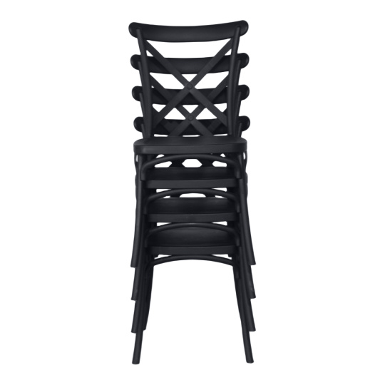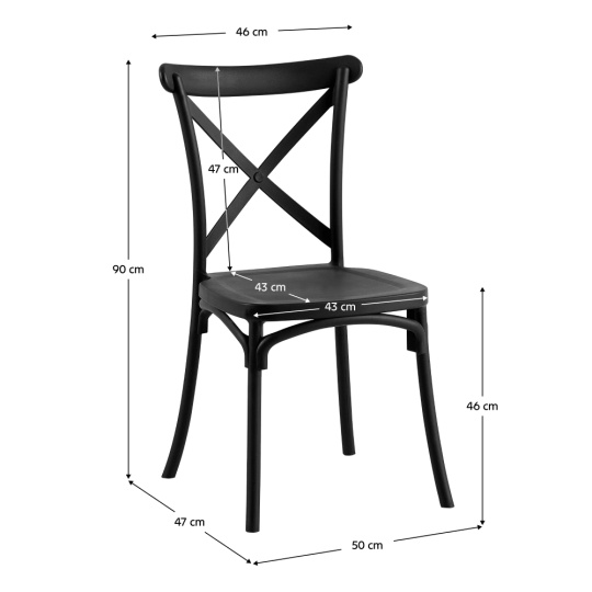 Materiál: plast Barva: černá Rozměry (ŠxHxV): 50x47x90 cm Výška sedu: 46 cm Hloubka sedu: 43 cm Šířka sezení: 43 cm Výška zad: 47 cm Šířka zad: 46 cm Nosnost: 100 kg Hmotnost: 4,25 kg Stohovatelná Vhodná do interiéru i exteriéru Dodáváno v monte