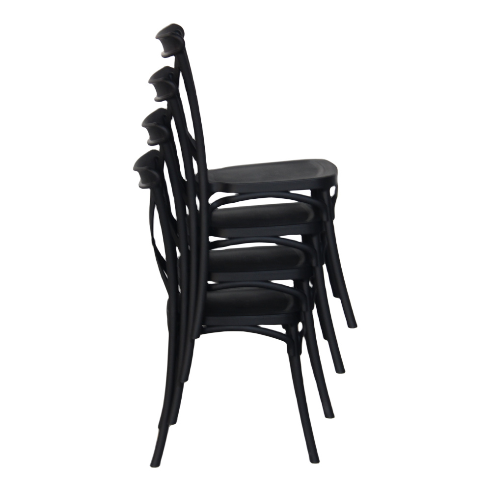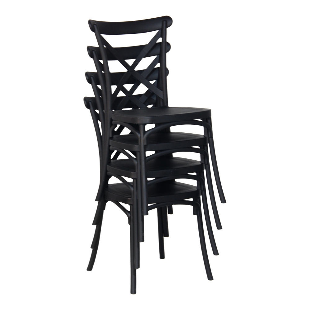 Materiál: plast Barva: černá Rozměry (ŠxHxV): 50x47x90 cm Výška sedu: 46 cm Hloubka sedu: 43 cm Šířka sezení: 43 cm Výška zad: 47 cm Šířka zad: 46 cm Nosnost: 100 kg Hmotnost: 4,25 kg Stohovatelná Vhodná do interiéru i exteriéru Dodáváno v monte