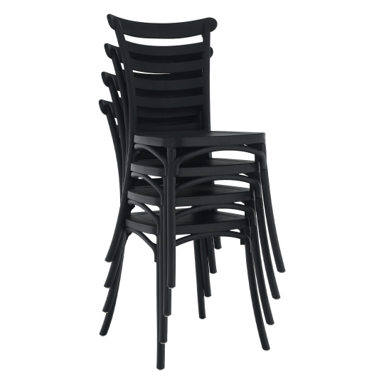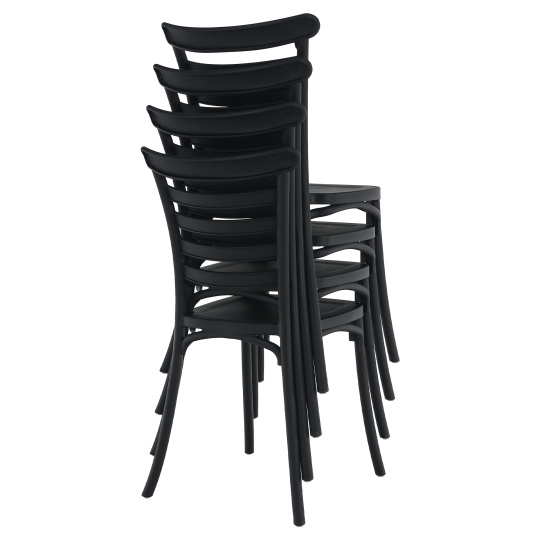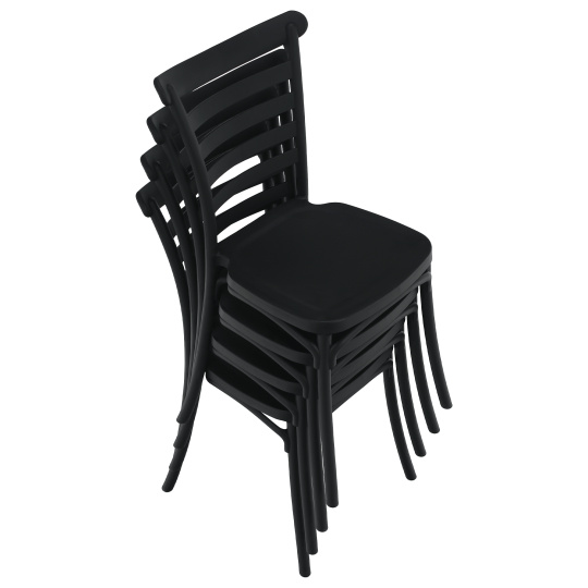 Materiál: plast Barva: černá Rozměry (ŠxHxV): 44x44x84 cm Výška sedu: 45 cm Hloubka sedu: 38 cm Šířka sezení: 38 cm Výška zad: 40 cm Šířka zad: 41 cm Nosnosť: 100 kg Hmotnost: 3,25 kg Stohovatelná Vhodná do interiéru i exteriéru Dodáváno v monte