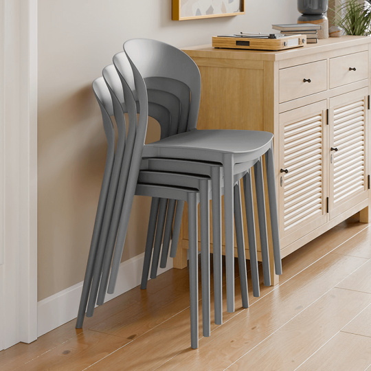 Materiál: plast Barva: šedá Rozměry (ŠxHxV): 44x47x77 cm Výška sedu: 45 cm Hloubka sedu: 37 cm Šířka sedu: 37 cm Stohovatelná S UV filtrem Vhodná do interiéru a exteriéru Nosnost: 100 kg Dodáváno v montě