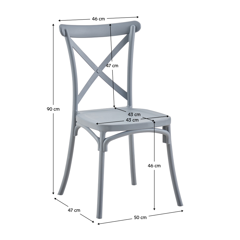 Materiál: plast Barva: šedá Rozměry (ŠxHxV): 50x47x90 cm Výška sedu: 46 cm Hloubka sedu: 43 cm Šířka sezení: 43 cm Výška zad: 47 cm Šířka zad: 46 cm Nosnost: 100 kg Hmotnost: 4,25 kg Stohovatelná Vhodná do interiéru i exteriéru Dodáváno v monte