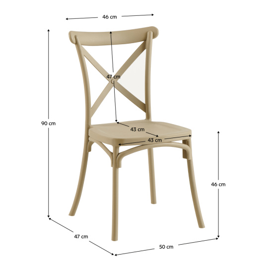Materiál: plast Barva: šedohnědá Rozměry (ŠxHxV): 50x47x90 cm Výška sedu: 46 cm Hloubka sedu: 43 cm Šířka sezení: 43 cm Výška zad: 47 cm Šířka zad: 46 cm Nosnost: 100 kg Hmotnost: 4,25 kg Stohovatelná Vhodná do interiéru i exteriéru Dodáváno v monte
