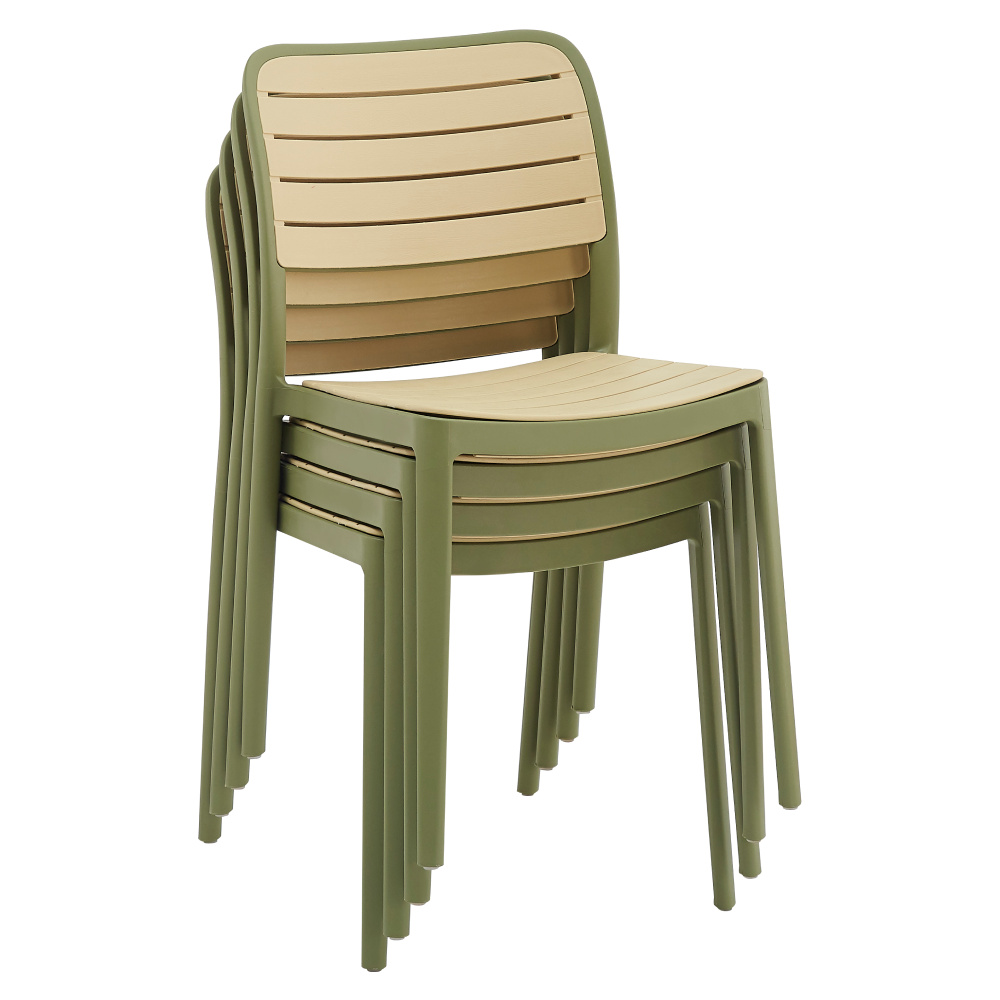Materiál: plast Barva: zelená/béžová Rozměry (ŠxHxV): 44x55x82 cm Výška sedu: 45 cm Hloubka sedu: 43 cm Šířka sedu: 44 cm Výška zad: 36 cm Šířka zad: 40 cm Nosnost: 100 kg Hmotnost: 4,8 kg Stohovatelná Vhodná do interiéru i exteriéru Dodáváno v monte