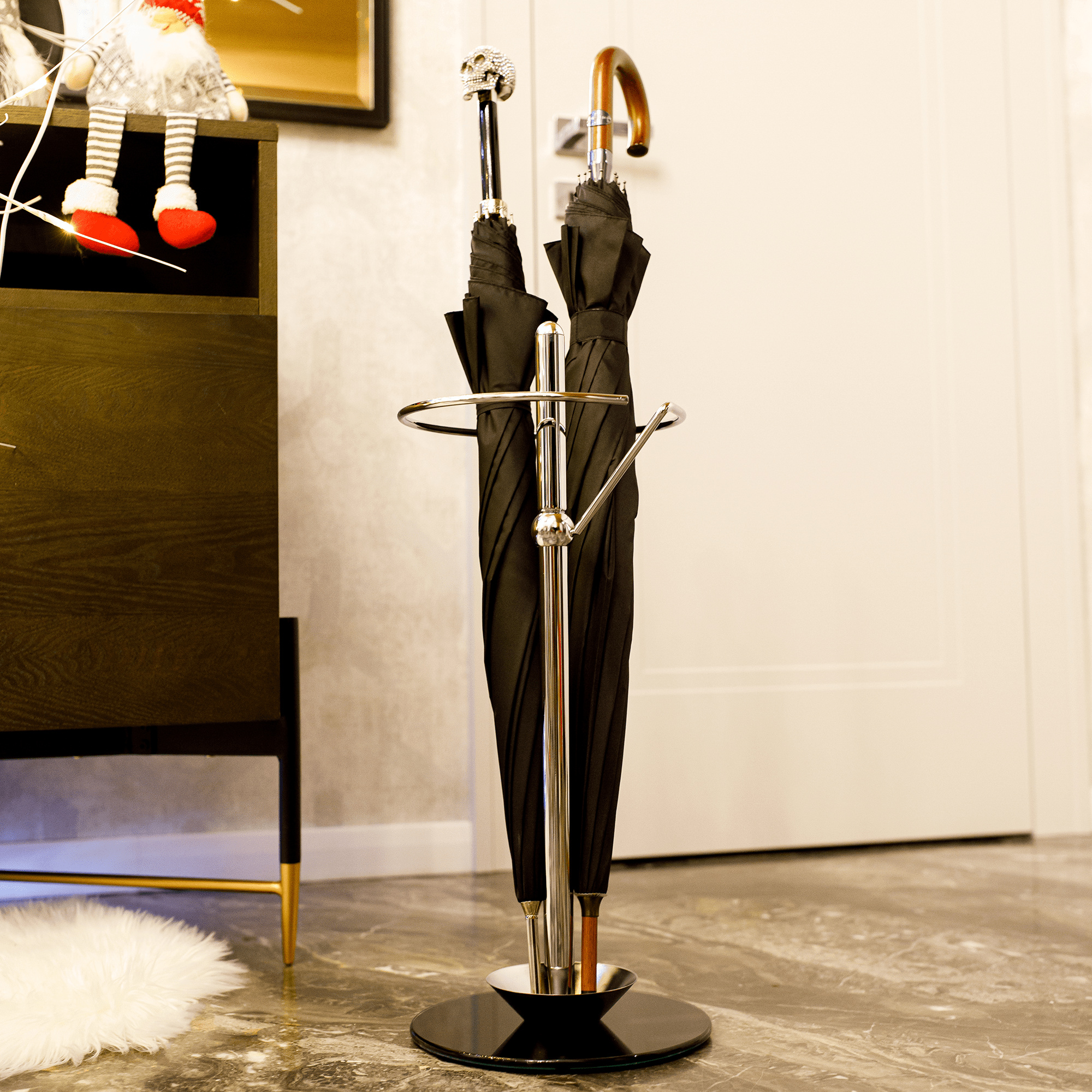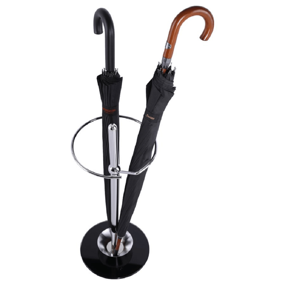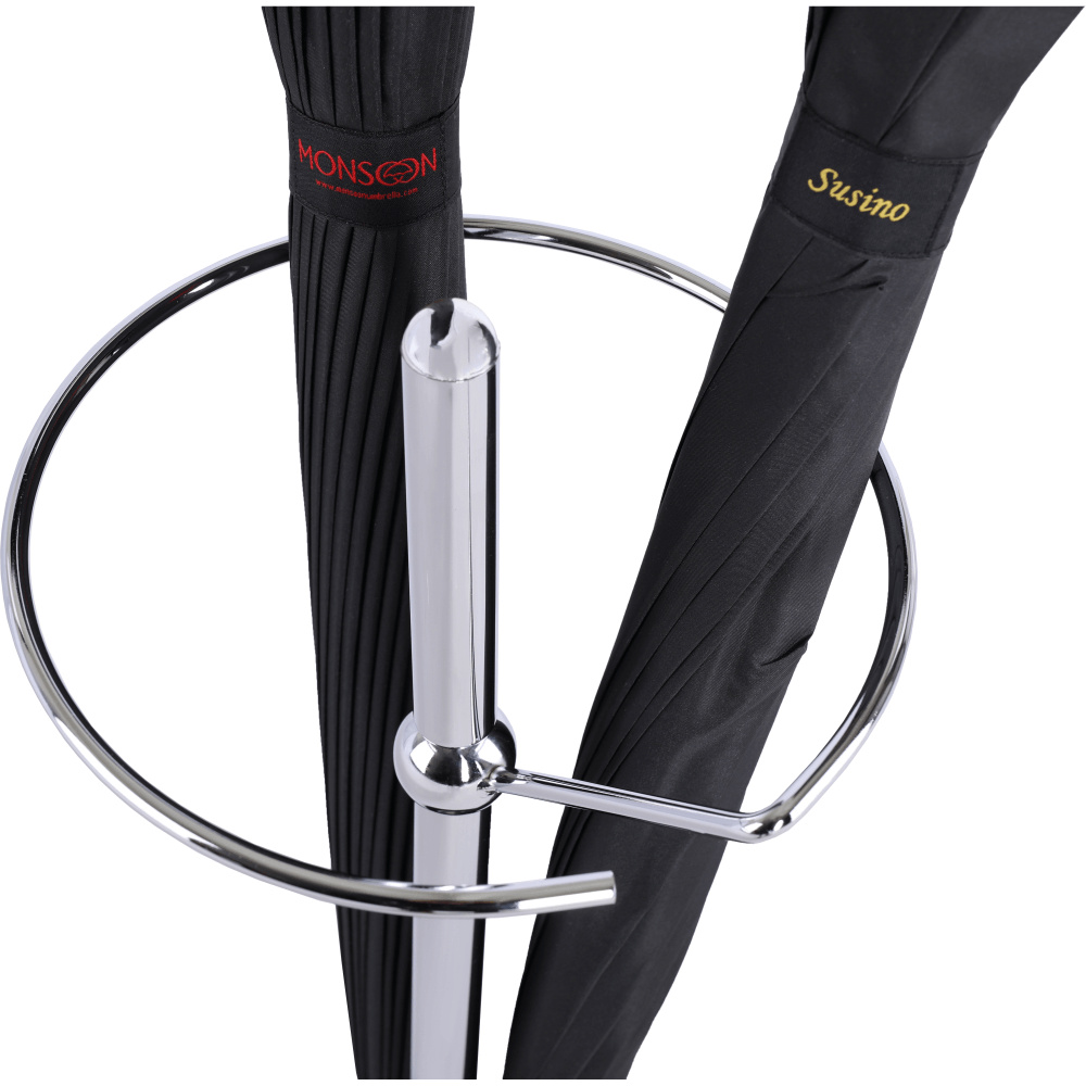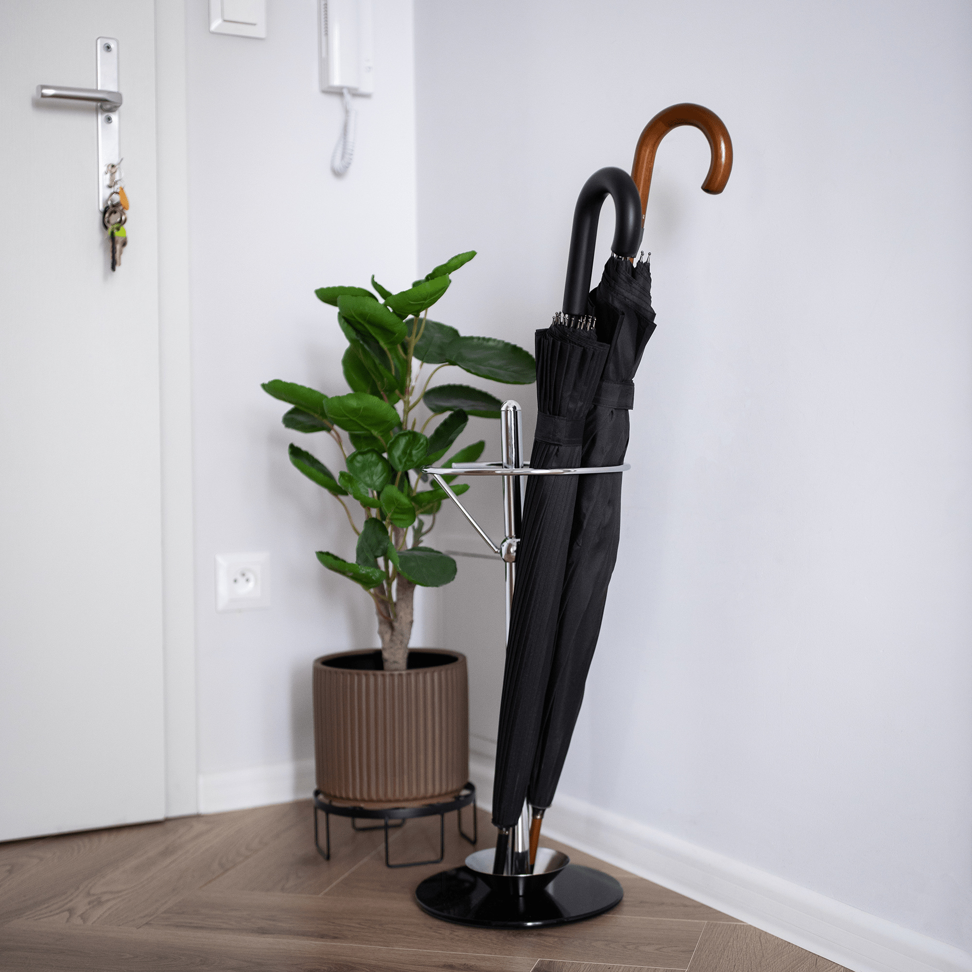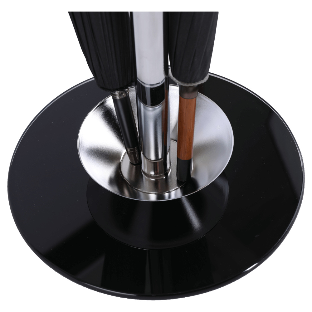 Stojan na deštníky Materiál: kov / sklo / chrom, Provedení: černá / chromovaná Rozměry: ŠxHxV: 26x26x60 cm Dodávané v demontu.