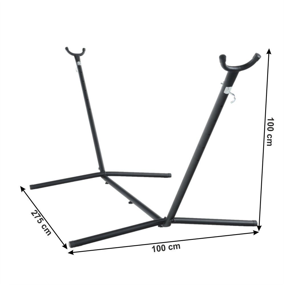 Zahradní stojan na houpací síť OTAN NEW TYP 3 Materiál: ocel Barva: černá Rozměry (ŠxHxV): 275x100x100 cm Maximální zatížení: 100 kg Dodávané v praktickém obalu. Dodávané v demontu.