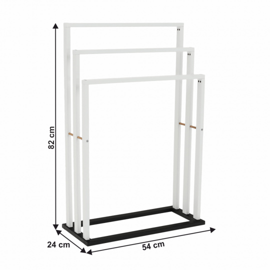 Stojan na ručníky KOMO NEW Materiál: MDF Provedení: bílá / černá Rozměry (ŠxHxV): 54x24x82 cm Dodávané v demonte.