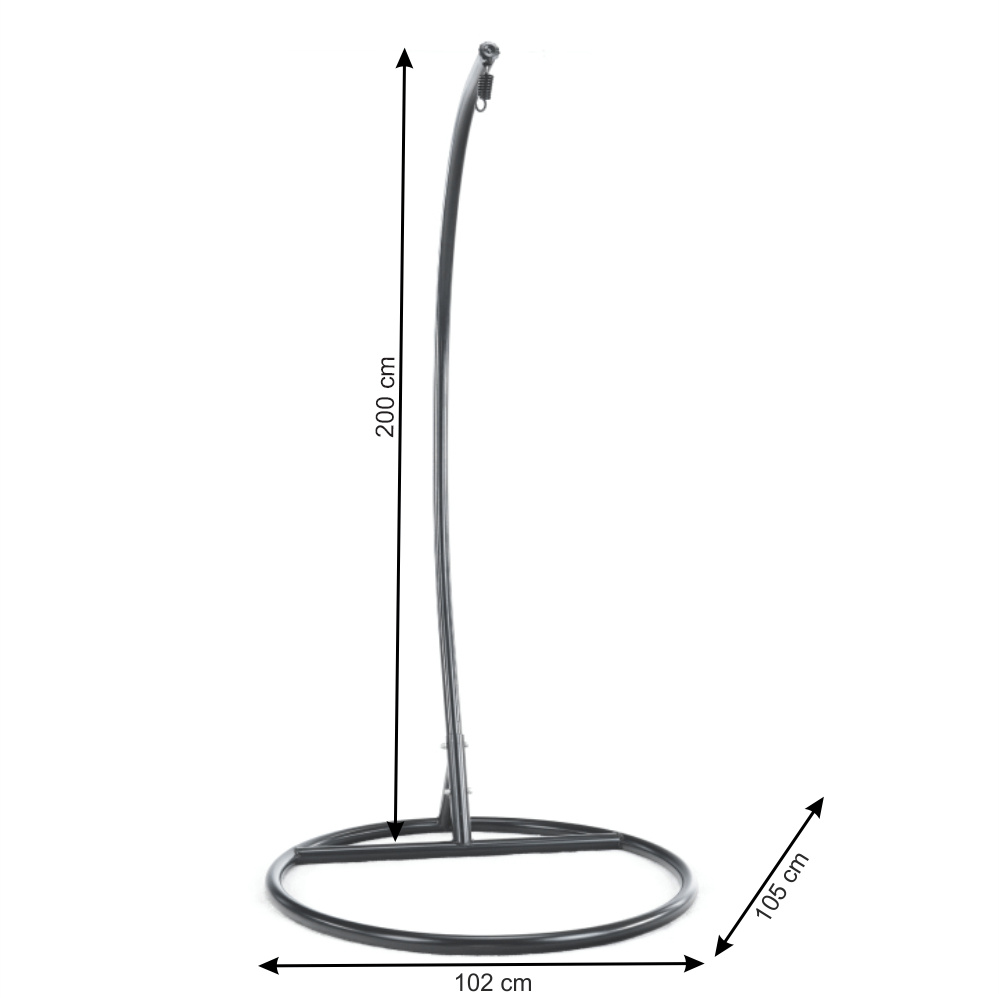 Zahradní stojan na houpací síť Materiál: ocel Barva: černá Rozměry (ŠxHxV): 102x105x200 cm Maximální zatížení: 100 kg Není vhodné pro křeslo BUBBLE TYP 1 a BUBBLE NEW TYP 1 Dodávané v demontu.