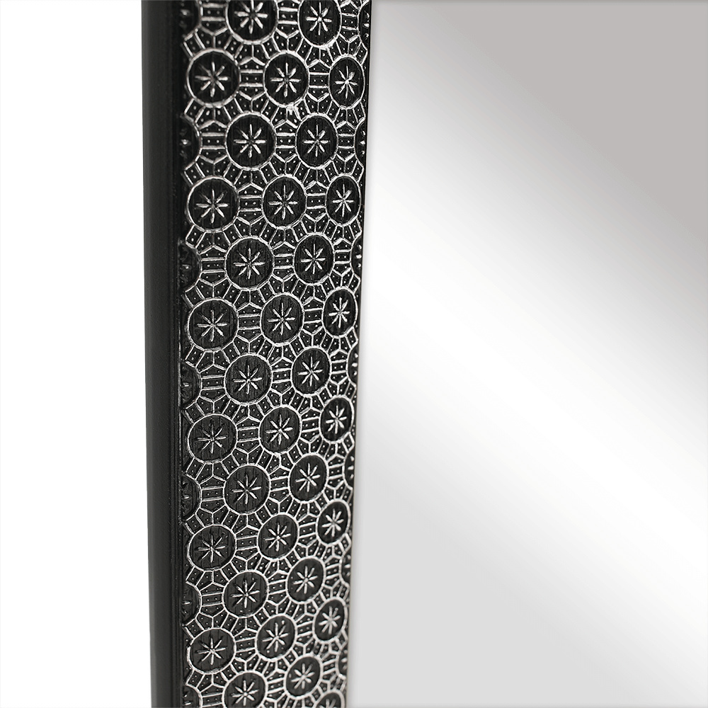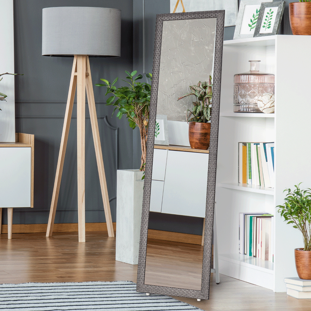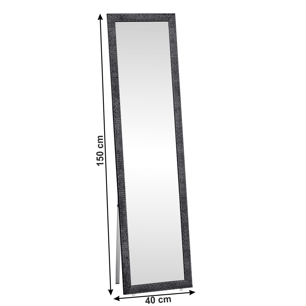 Materiál stojan: kov Farba: biela Materiál rám: drevo Farba: čierna Rozmery (ŠxV): 40x150 cm Elegantné Stojanové Rám s ornamentom Dodávané v demonte