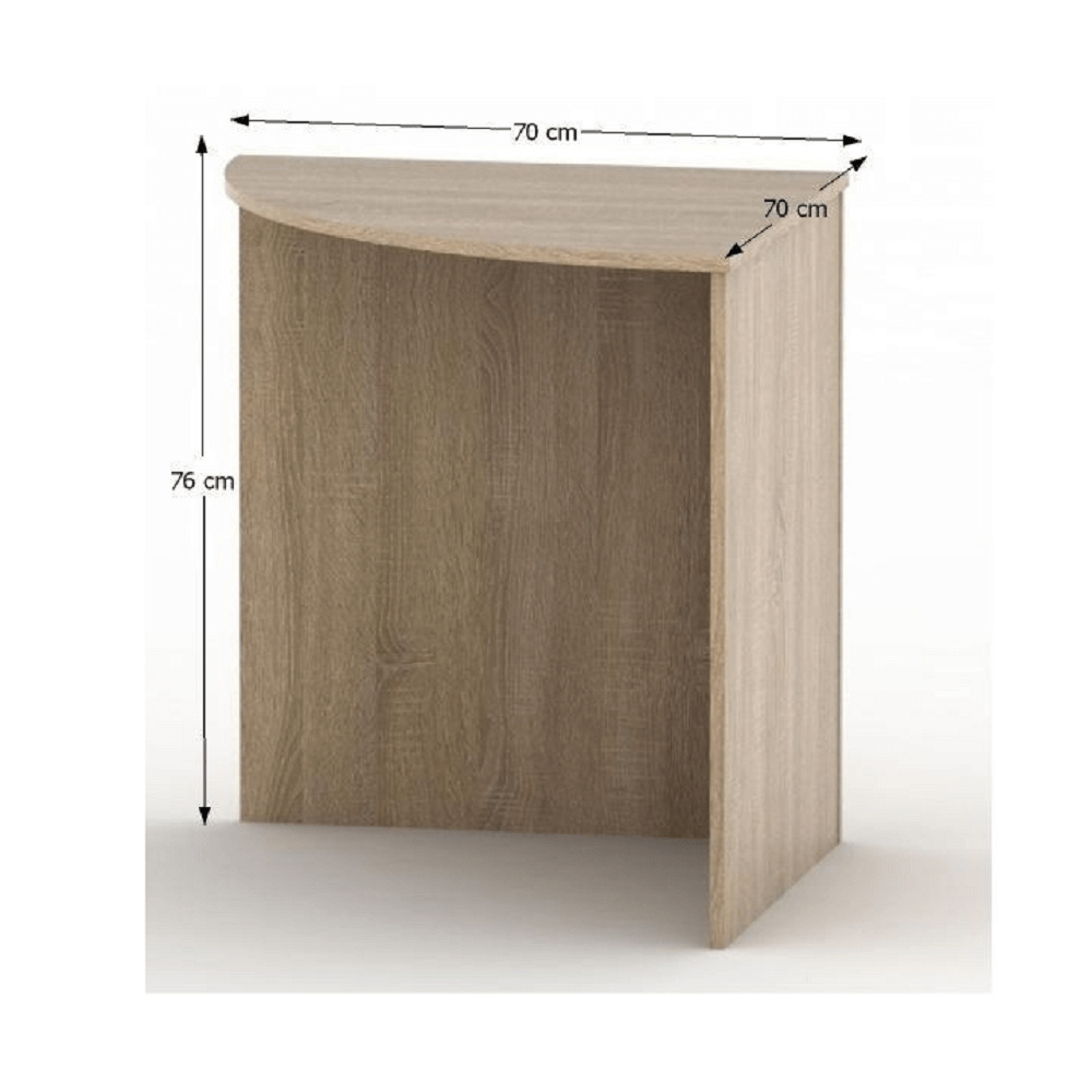 Stůl rohový obloukový typ AS 024 Materiál: DTD laminovaná / ABS hrany Provedení: dub sonoma Rozměry (ŠxHxV): 70x70x76 cm Tloušťka materiálu: 16 mm rohový Skladem ihned k odběru Sektor vhodný na zařízení kanceláři, pracoven, školních učeben nebo zasedacích místností Dodávané v demontu