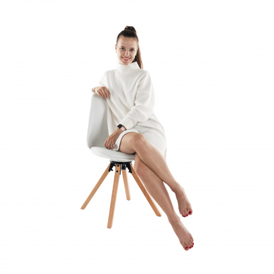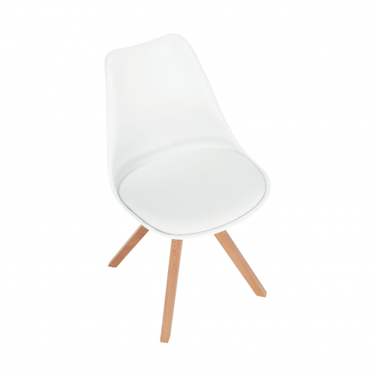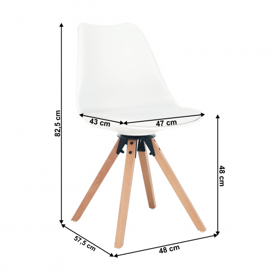 Materiál čalounění sedáku: ekokůže Barva: bílá Materiál konstrukce: plast Barva: bílá Materiál nohy: dřevo Barva: buk Oděruodolnost textilie podle testu Martindale: 100 000 oděrek Rozměry (ŠxHxV): 48x57,5x82,5 cm Šířka sezení: 47cm Hloubka sezení: 43 cm Výška sezení: 48 cm Nosnost: 100 kg otočná Až do 360 ° stupňů Dodávané v demontu