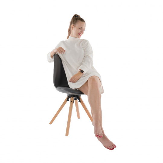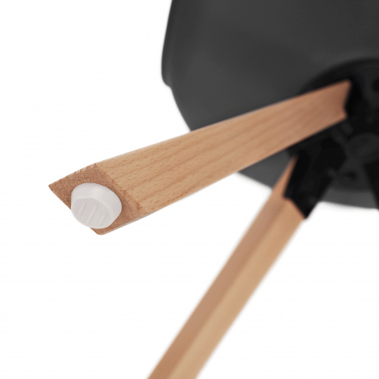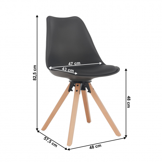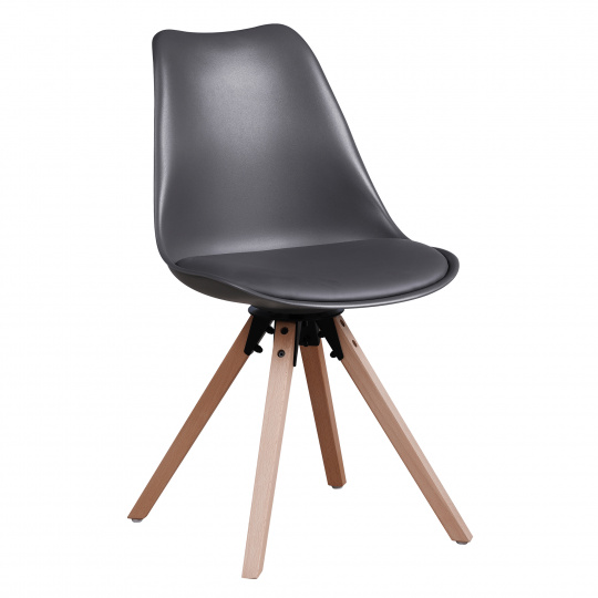 Materiál čalounění sedáku: ekokůže Barva: tmavě šedá Materiál konstrukce: plast Barva: tmavě šedá Materiál nohy: dřevo Barva: buk Oděruodolnost textilie podle testu Martindale: 100 000 oděrek Rozměry (ŠxHxV): 48x57,5x82,5 cm Šířka sezení: 47cm Hloubka sezení: 43 cm Výška sezení: 48 cm Nosnost: 100 kg otočná Až do 360 ° stupňů Dodávané v demontu