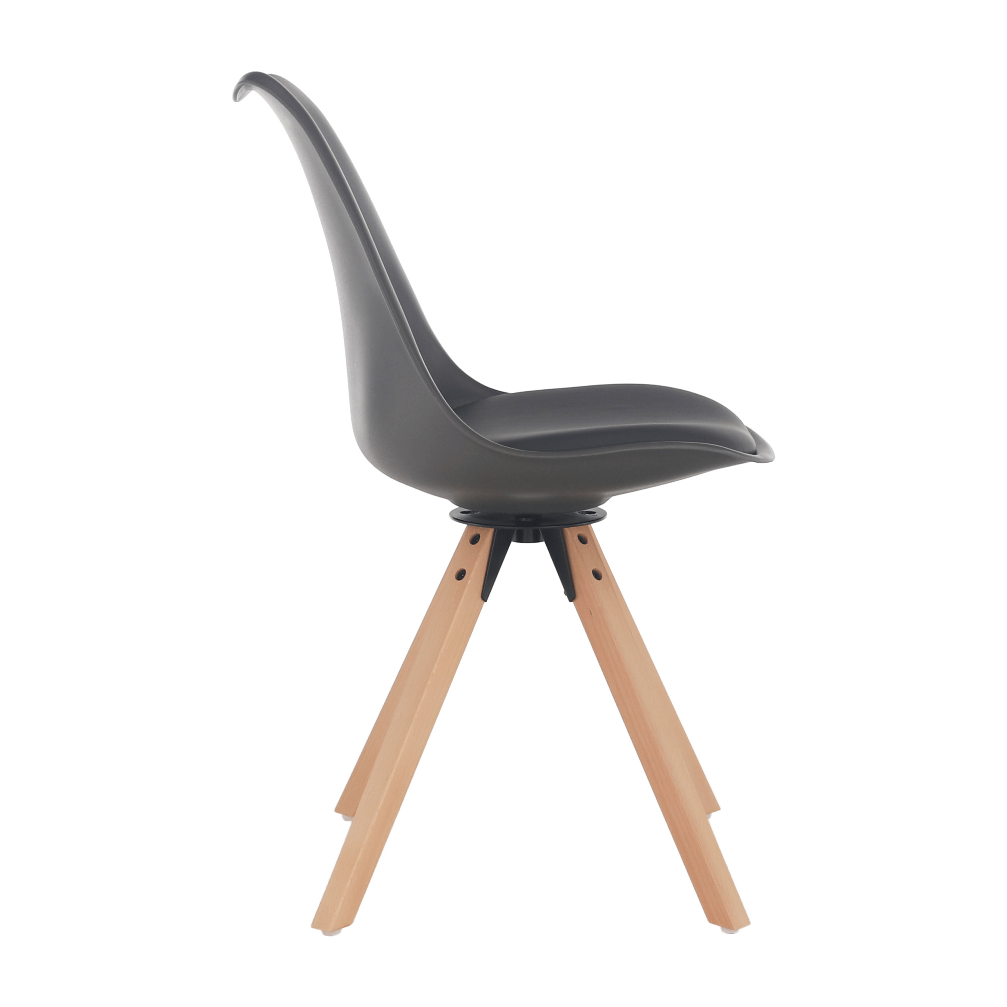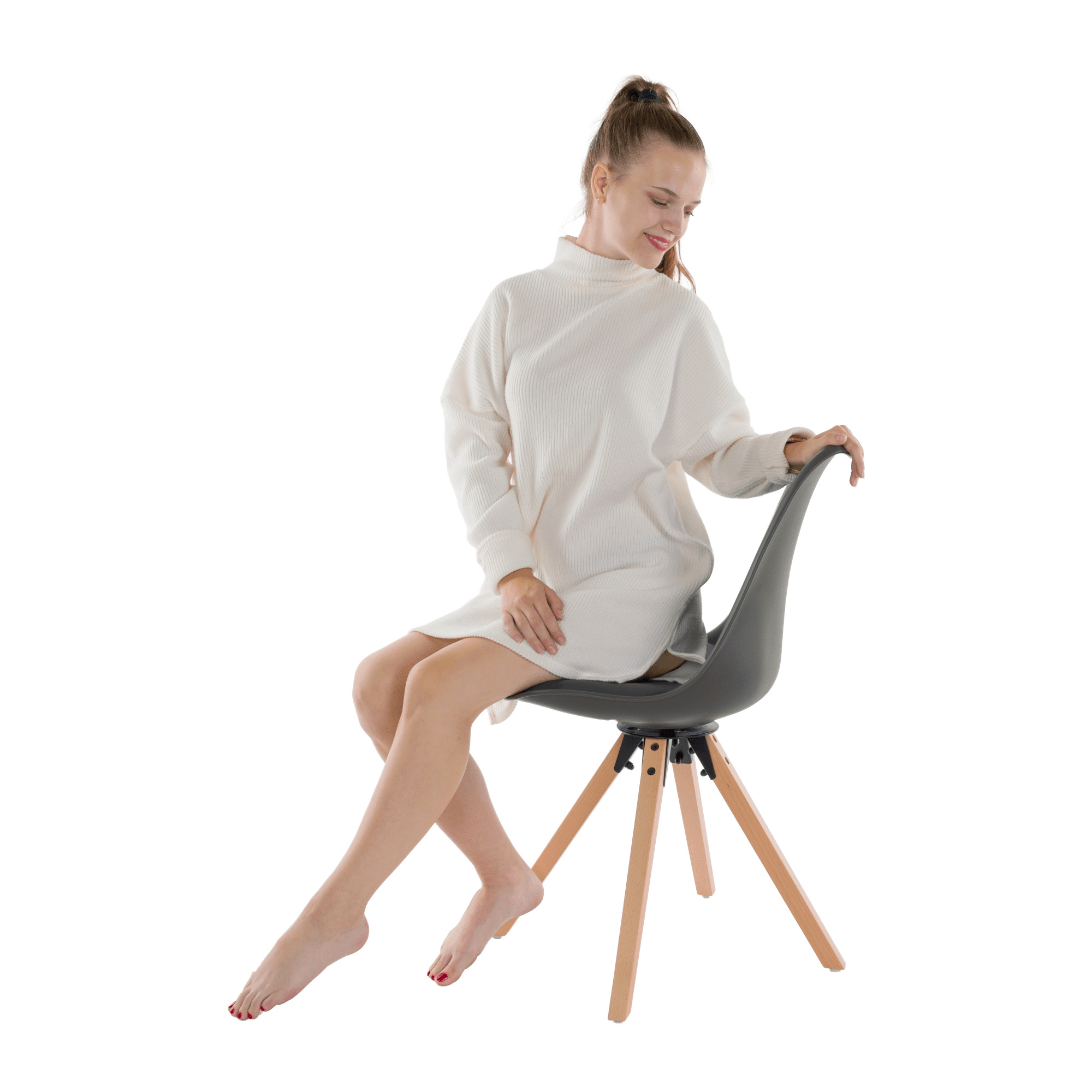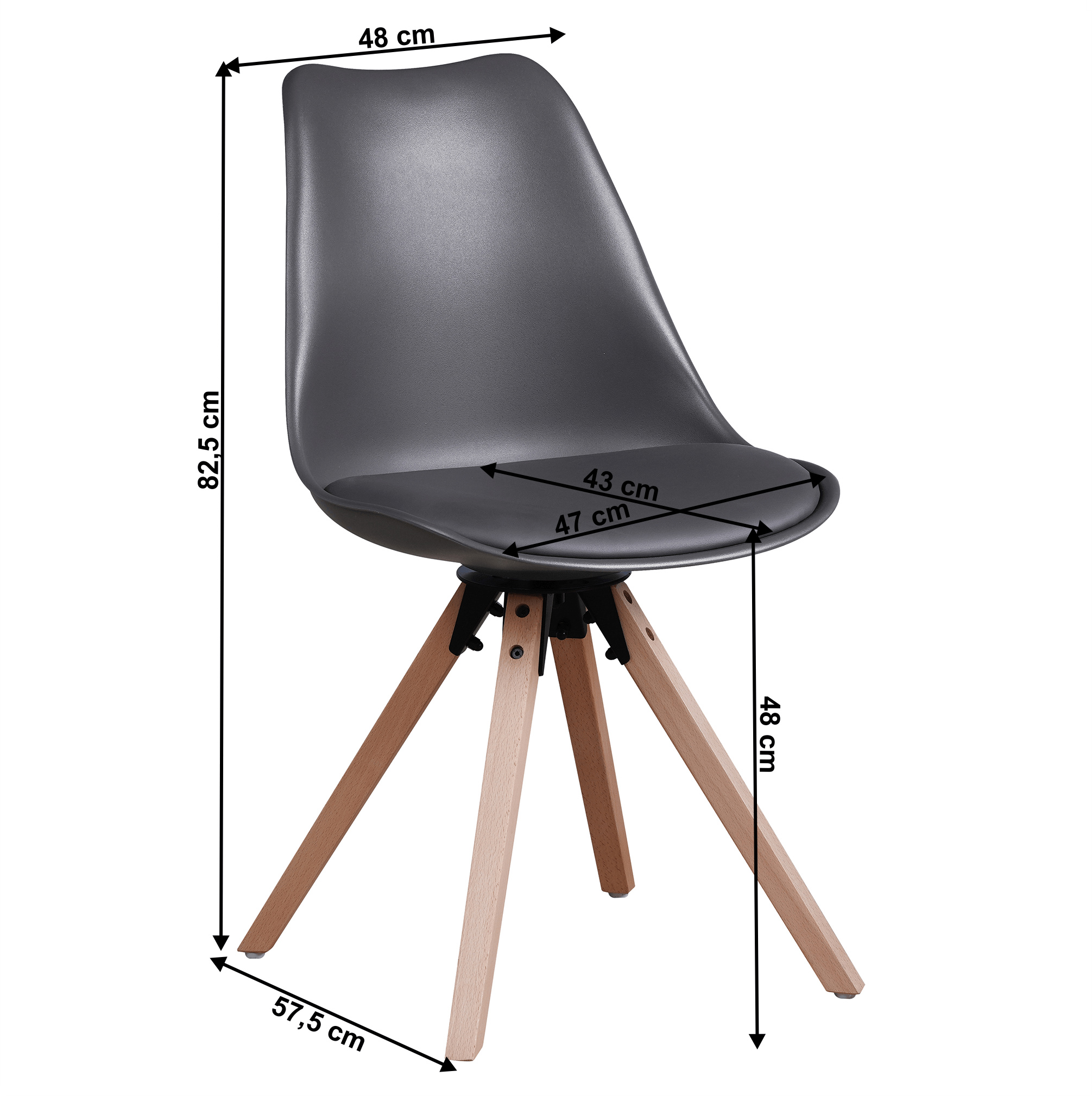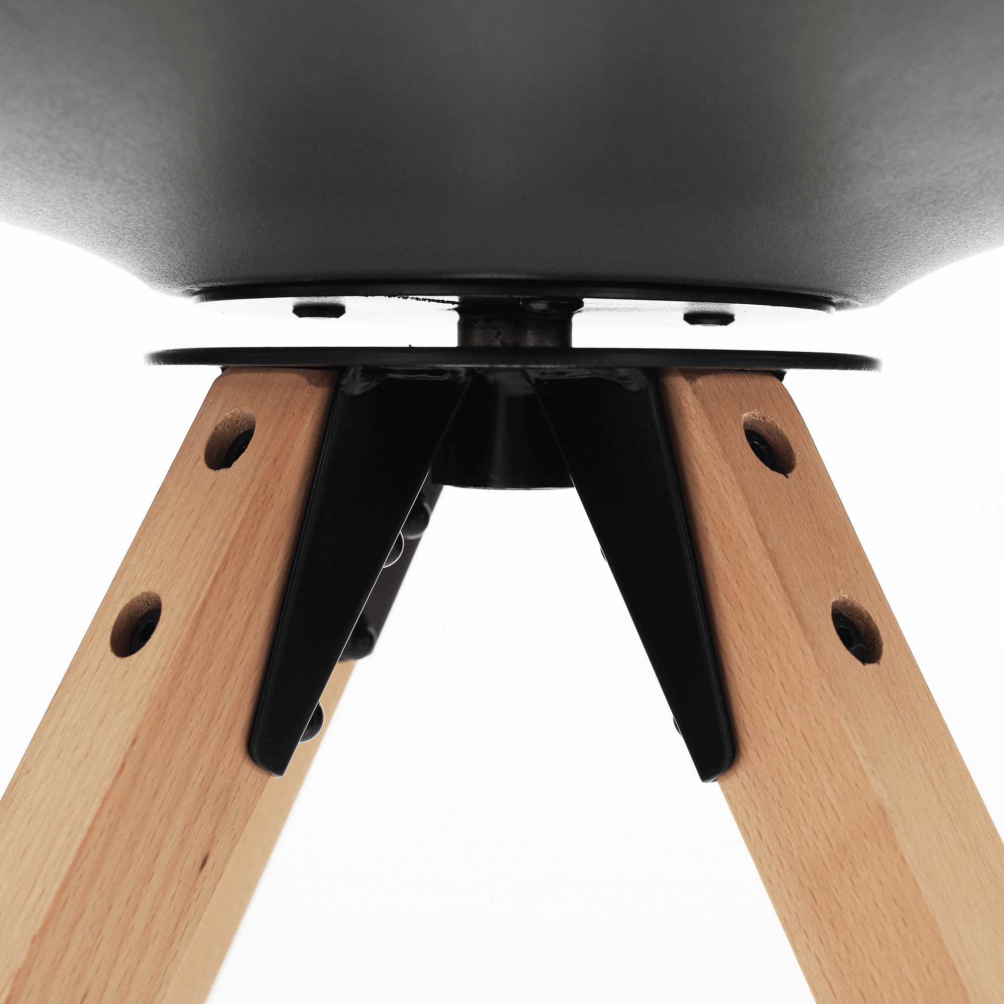 Materiál čalounění sedáku: ekokůže Barva: tmavě šedá Materiál konstrukce: plast Barva: tmavě šedá Materiál nohy: dřevo Barva: buk Oděruodolnost textilie podle testu Martindale: 100 000 oděrek Rozměry (ŠxHxV): 48x57,5x82,5 cm Šířka sezení: 47cm Hloubka sezení: 43 cm Výška sezení: 48 cm Nosnost: 100 kg otočná Až do 360 ° stupňů Dodávané v demontu