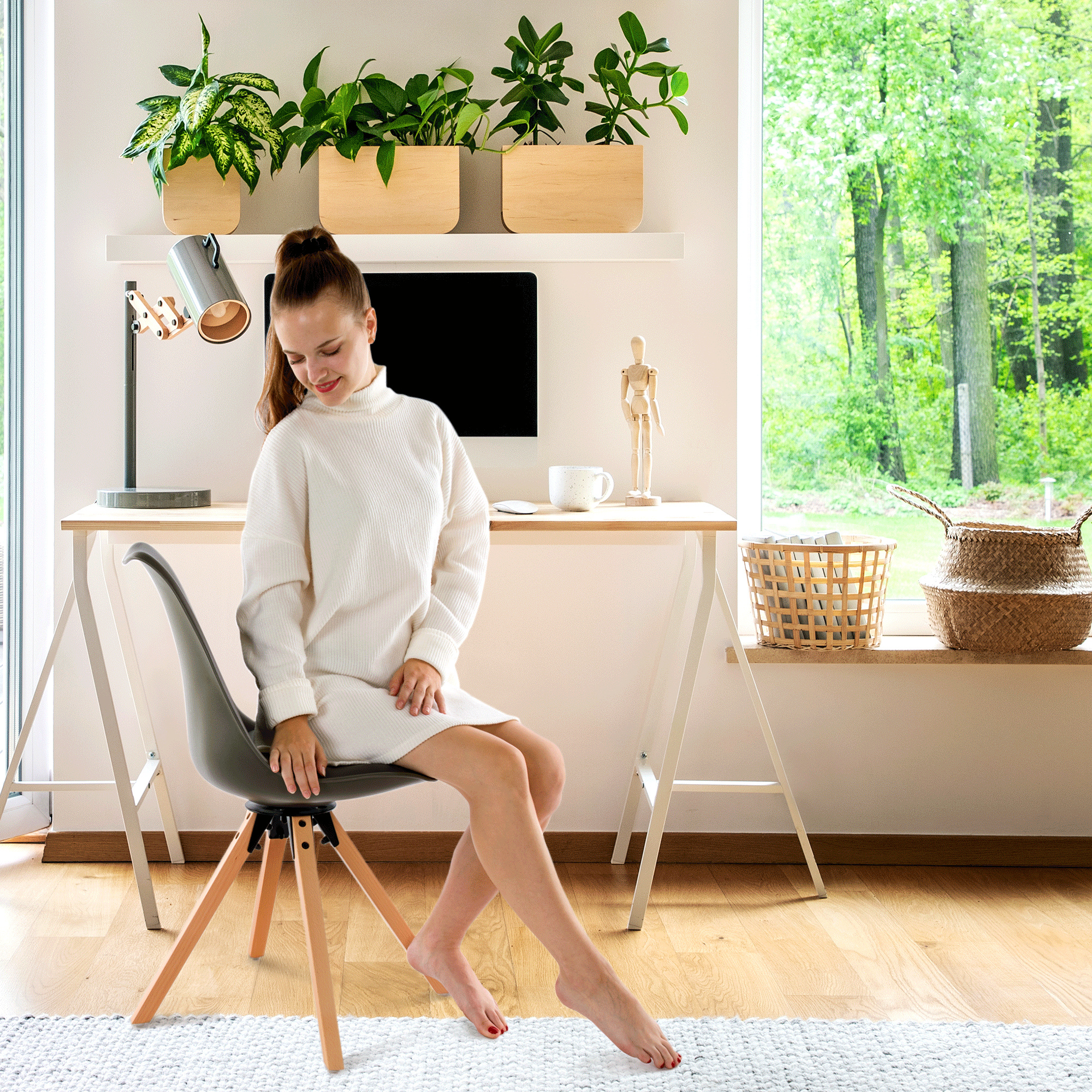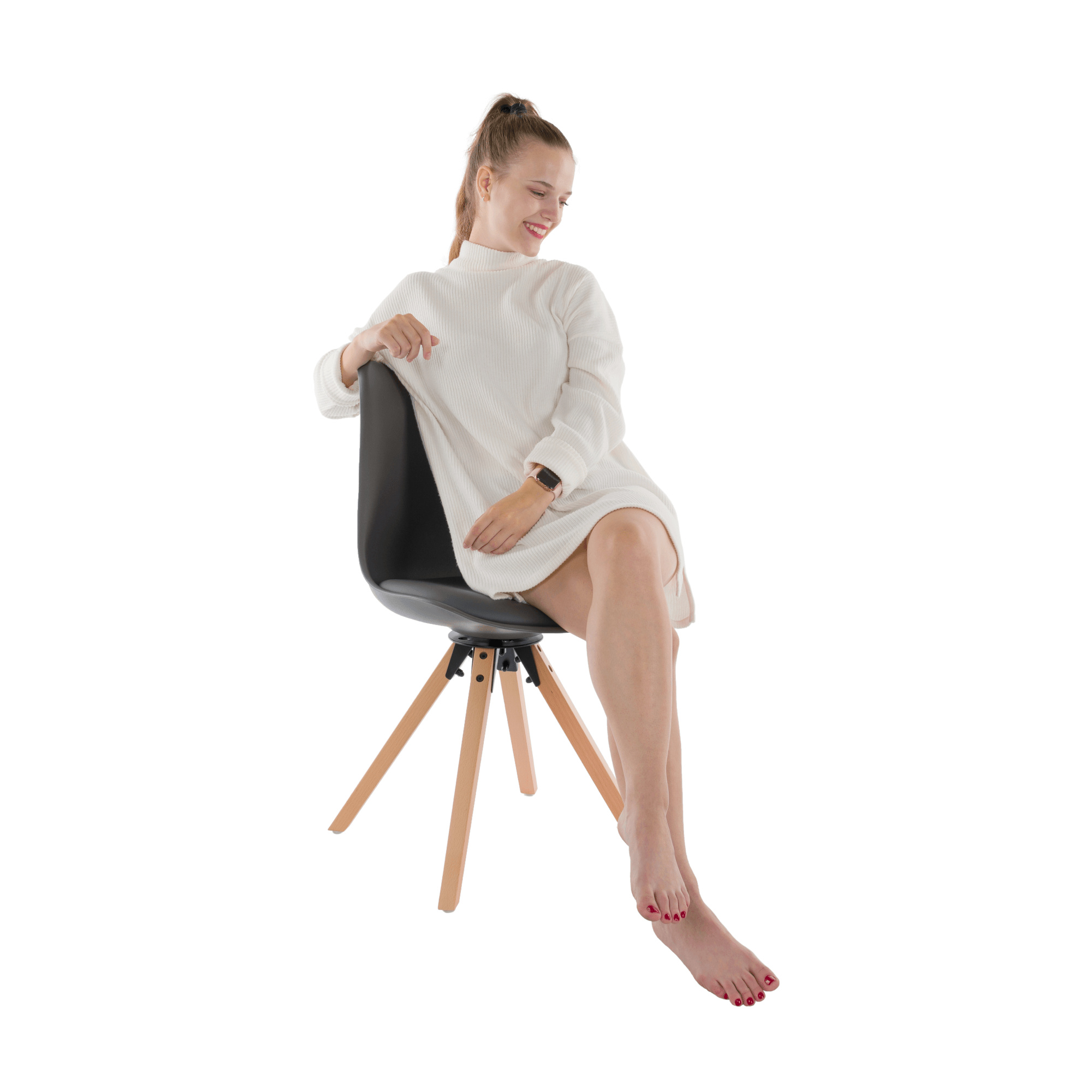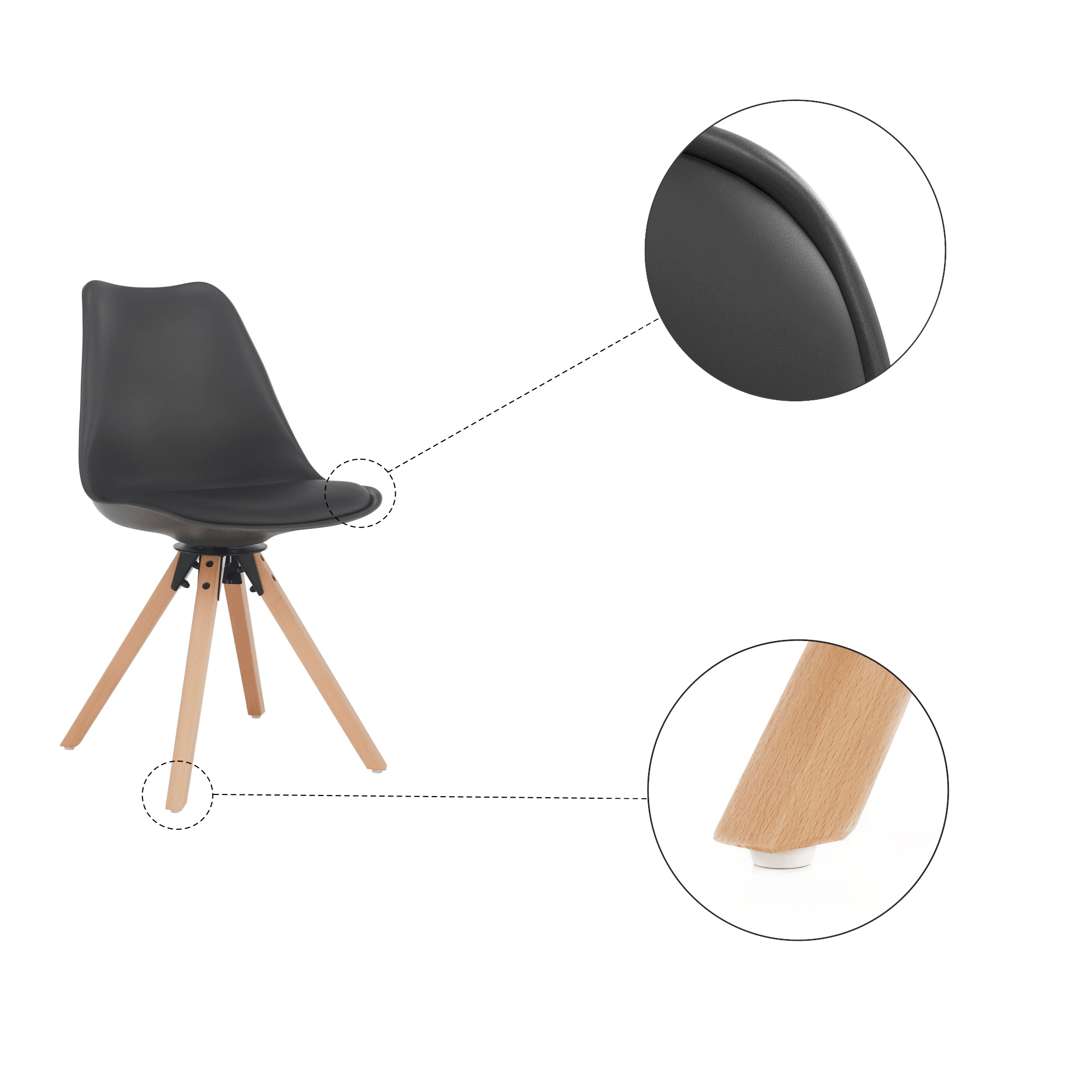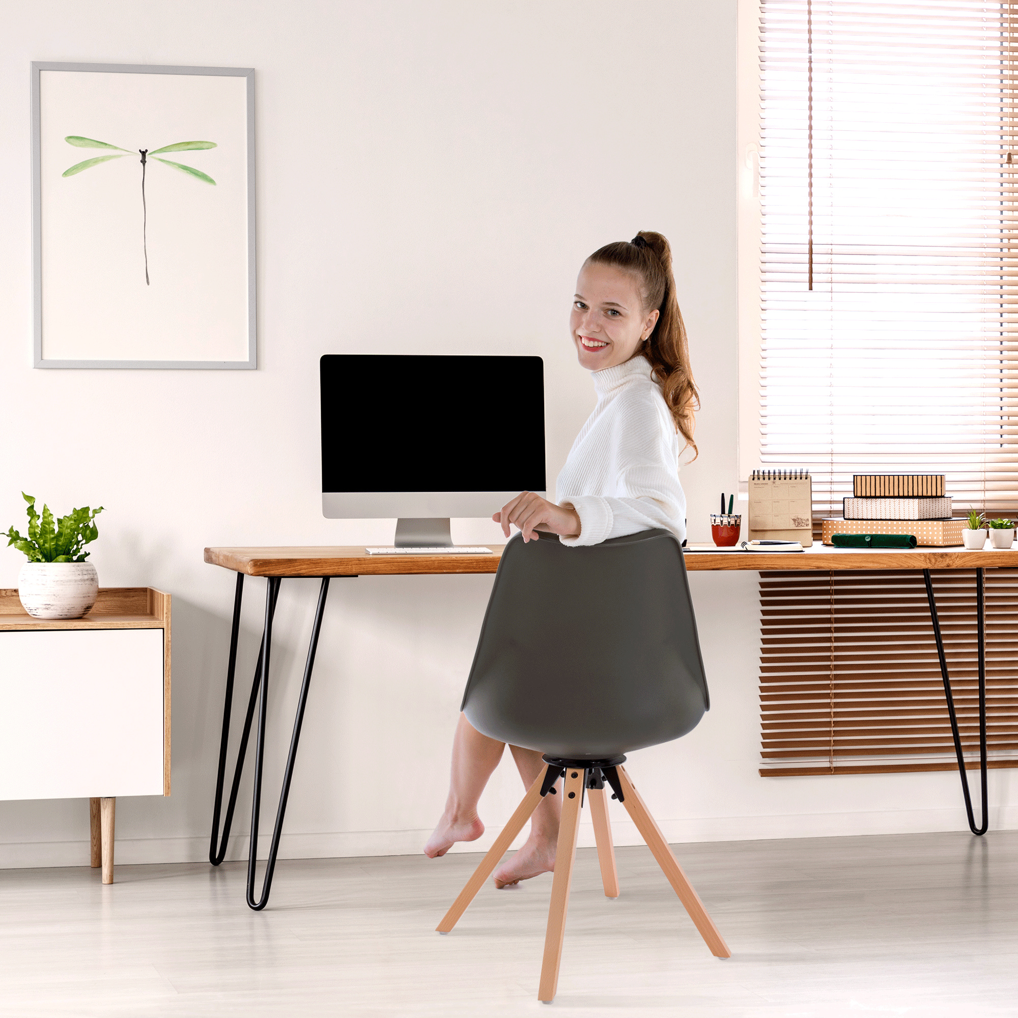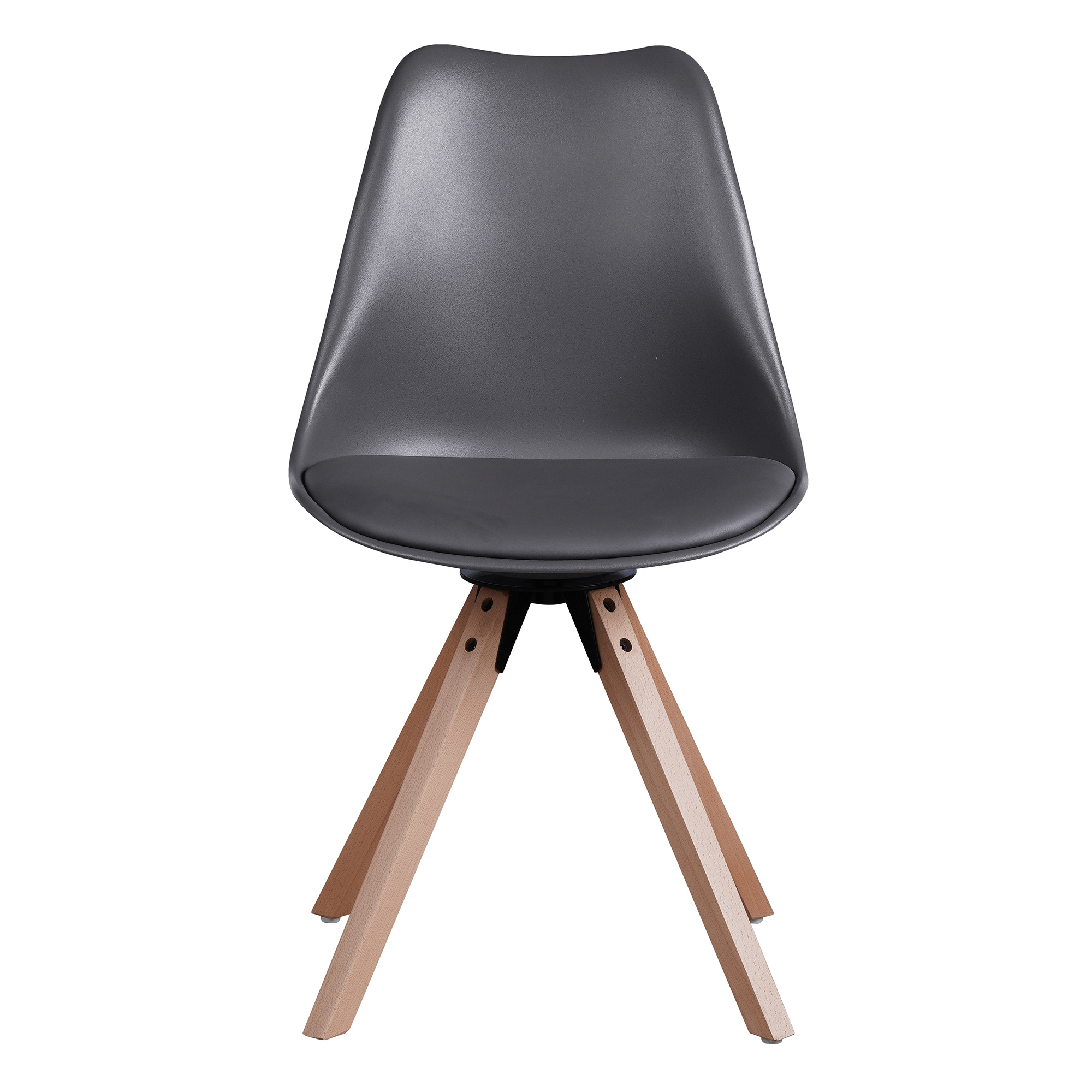 Materiál čalounění sedáku: ekokůže Barva: tmavě šedá Materiál konstrukce: plast Barva: tmavě šedá Materiál nohy: dřevo Barva: buk Oděruodolnost textilie podle testu Martindale: 100 000 oděrek Rozměry (ŠxHxV): 48x57,5x82,5 cm Šířka sezení: 47cm Hloubka sezení: 43 cm Výška sezení: 48 cm Nosnost: 100 kg otočná Až do 360 ° stupňů Dodávané v demontu
