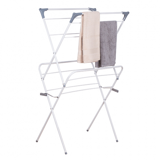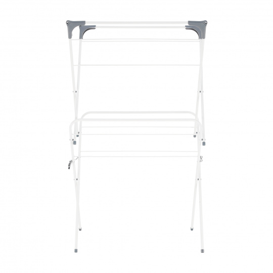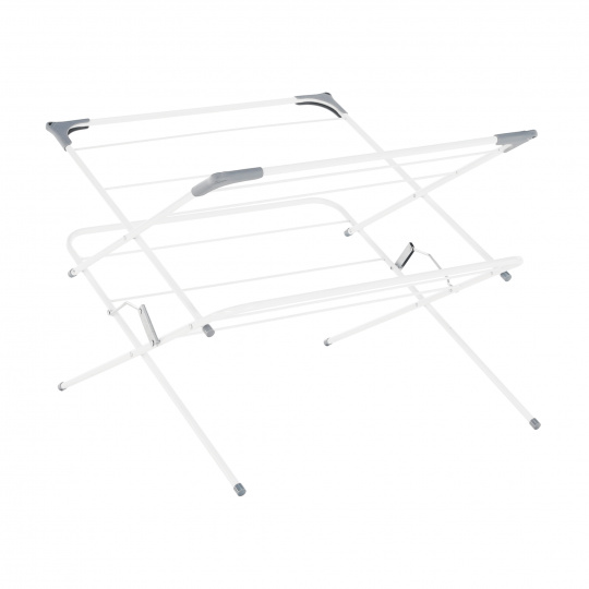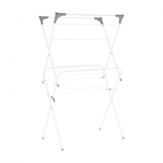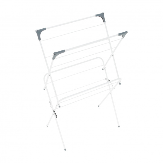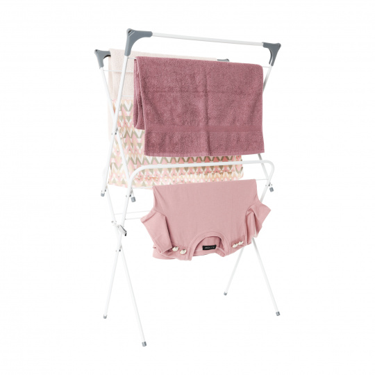 Materiál: kov Barva: bílá Rozměry (ŠxHxV): 172x55x107 cm Moderní design Rozkládací Stojící 2x easyclip na sušení drobného prádla Výklopná boční ramena Protiskluzové stabilizační kluzáky Hmotnost: 2.6kg