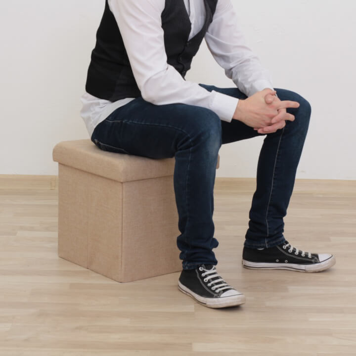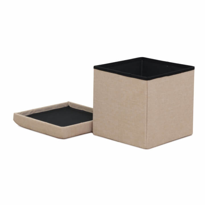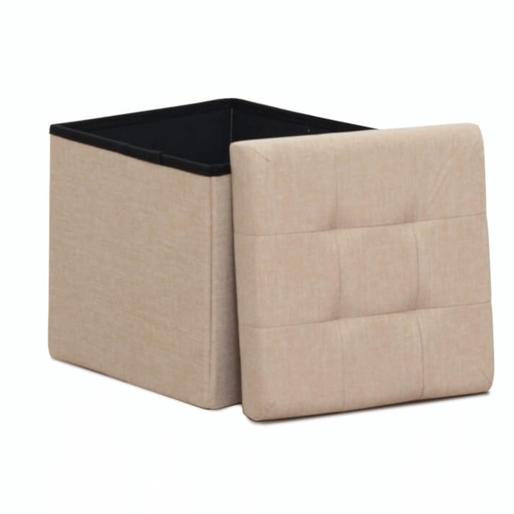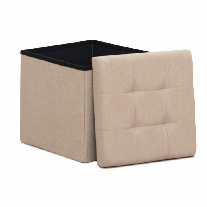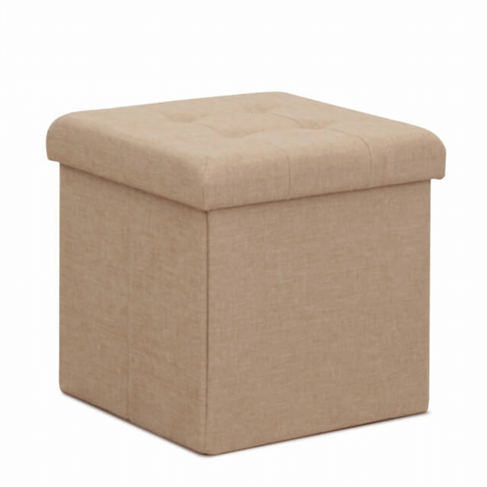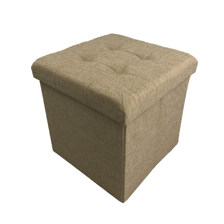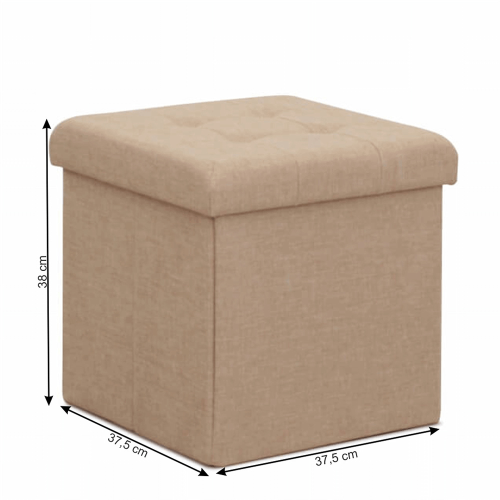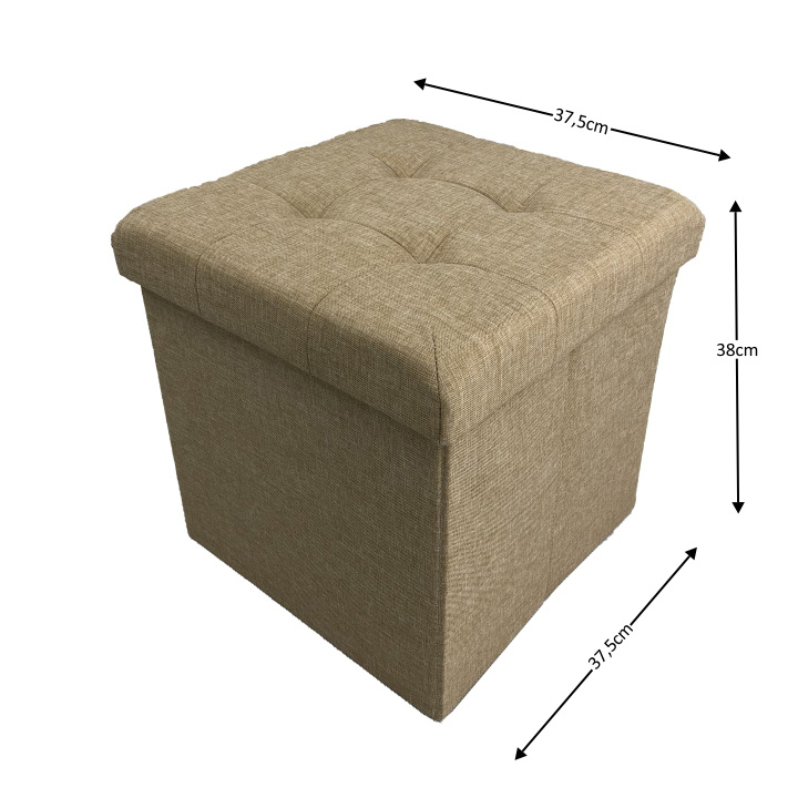 Taburet s prošitím a úložným prostorem FALON Materiál: látka Oděruodolnost textilie podle testu Martindale: 90 000 oděrek Barva: béžová Rozměry (ŠxHxV): 37,5x37,5x38 cm Výška sedu: 38 cm Hloubka sedu: 37,5 cm Dodávané v demontu.