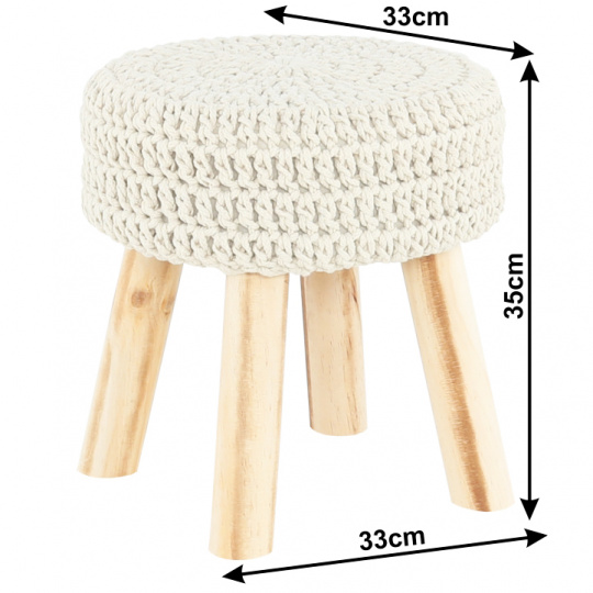 Taburet s dřevěnými nohami NAIDA Materiál: vlna / dřevo Barva: béžová Rozměry (ŠxHxV): 33x33x35 cm Výška sedu: 40 cm Nosnost: 100 kg Dodávané v demontu.