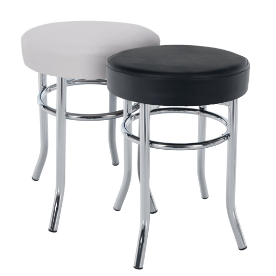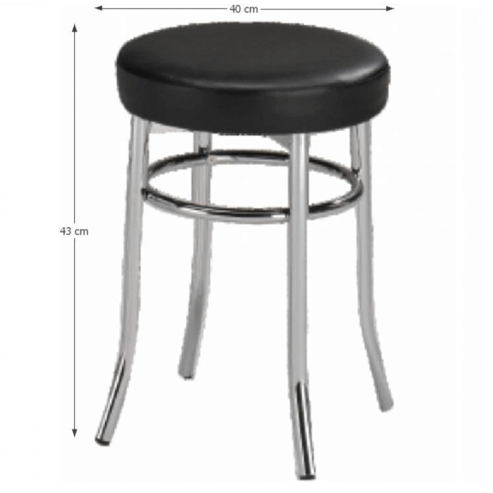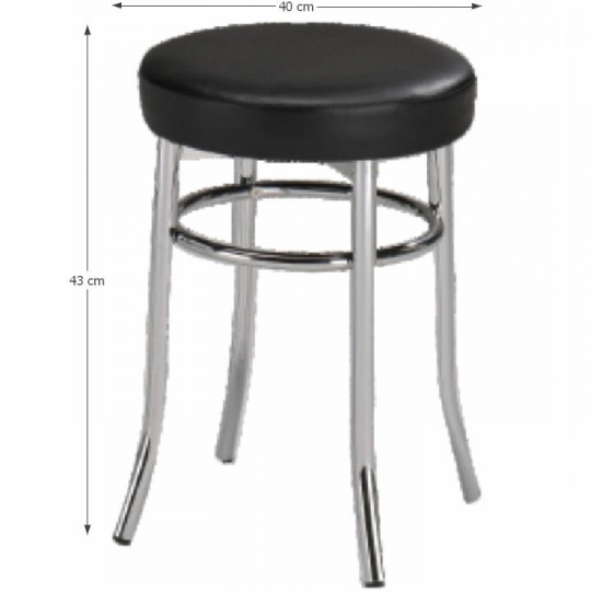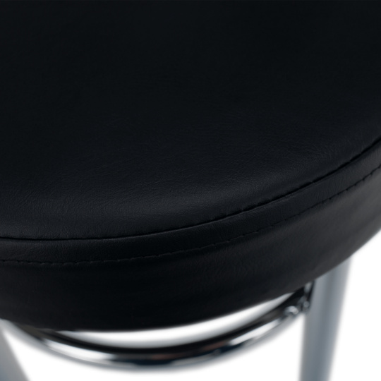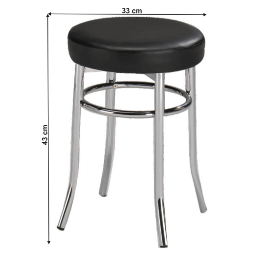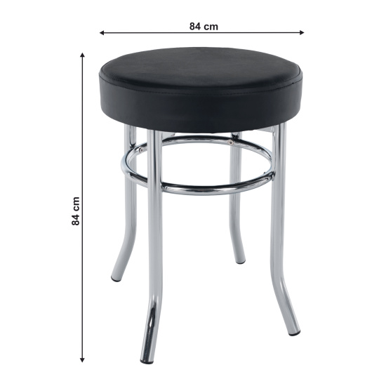 Materiál: kov/ekokůže Oděruodolnost textilie podle testu Martindale: 100 000 oděrů Barva: chrom/černá Výška sedu: 43 cm Průměr sedáku: 33 cm Nosnost: 100 kg Dodáváno v demontu