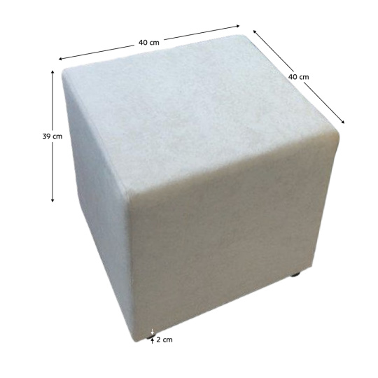 Materiál: látka Alova 07 Barevné provedení: béžová Oděruodolnost textilie podle testu Martindale: 65 000 oděrů Jádro taburetu: dřevotříska/pur pěna Rozměry (ŠxHxV): 40x40x39 cm Výška sedu: 39 cm Hloubka sedu: 40 cm Nosnost: 100 kg S plastovými nožičkami Výška nožiček: 2 cm Hmotnost: 2 kg Dodáváno v monte