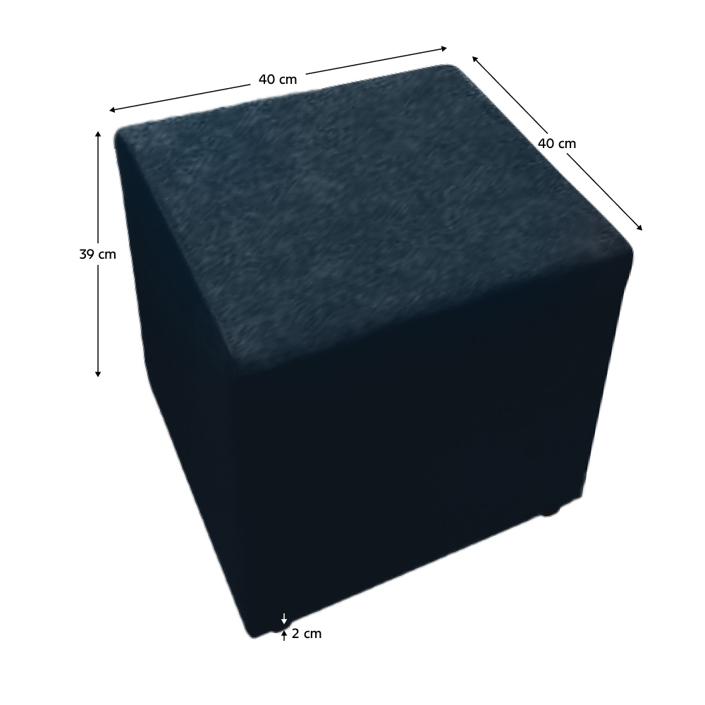 Materiál: látka Alova 04 Barevné provedení: černá Oděruodolnost textilie podle testu Martindale: 65 000 oděrů Jádro taburetu: dřevotříska/pur pěna Rozměry (ŠxHxV): 40x40x39 cm Výška sedu: 39 cm Hloubka sedu: 40 cm Nosnost: 100 kg S plastovými nožičkami Výška nožiček: 2 cm Hmotnost: 2 kg Dodáváno v monte